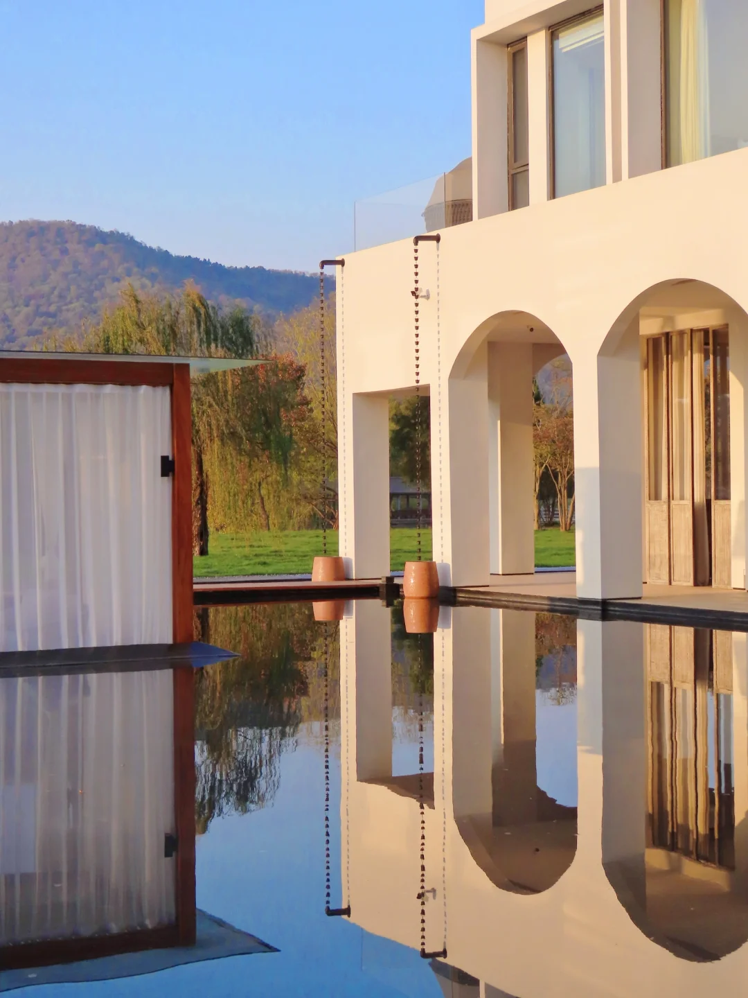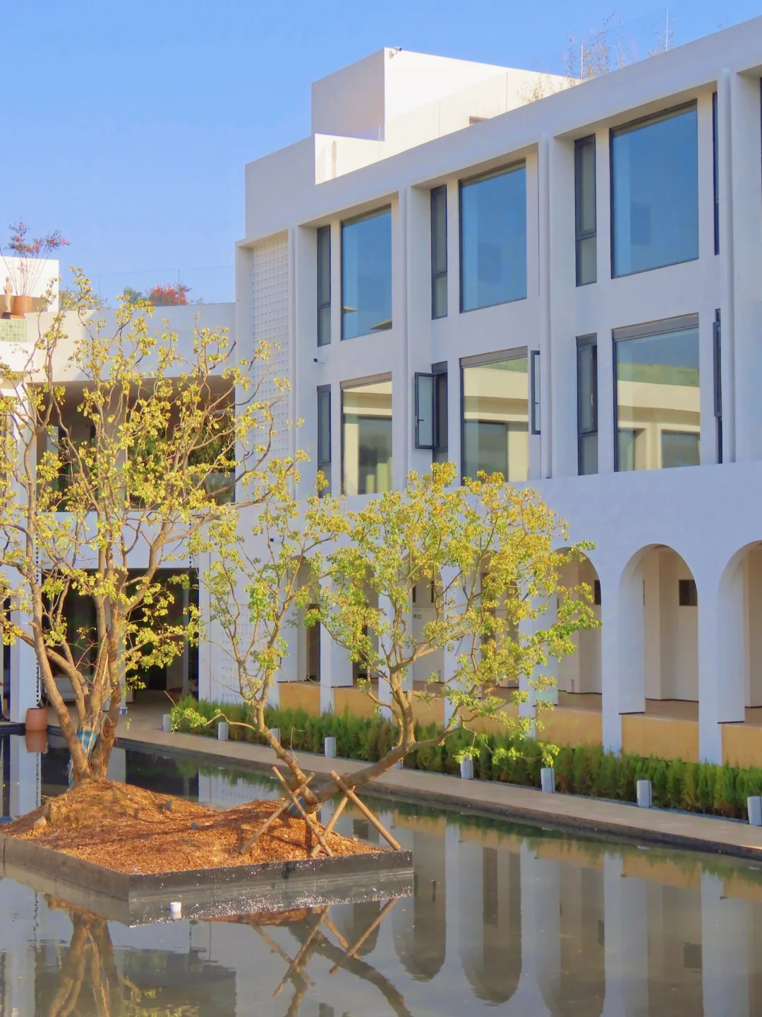白色的拱门和水池里的倒影,让人仿佛来到了希腊的圣托里尼,拍照太好看了