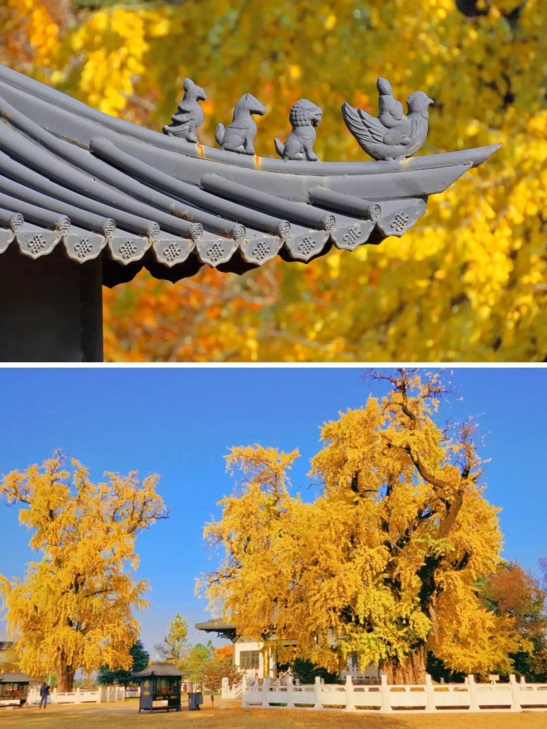 这里的3颗古银杏已经到了最佳观赏期,蓝天下金黄的银杏叶美到不可方物,果然论观赏性还得是千年古银杏!