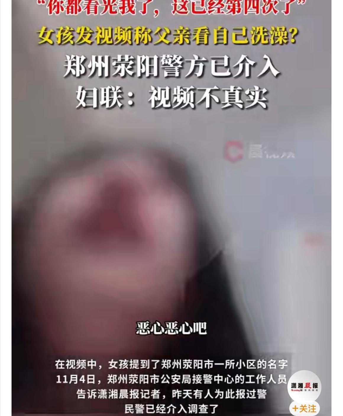 【事件追踪】女孩控诉父亲进浴室不敲门,视频引发热议,警方介入调查真相 这两天,一则关于家庭隐私的视频在网上炸开了锅。2025年11月3日,河南郑州荥阳一名女孩在网络平台发布视频,称自己的父亲四次没有敲门就闯进卫生间,目睹自己洗澡,甚至换衣服的时候也被看到。视频里女孩的母亲也在场,还在一旁表示,父亲本该敲门。这样私密的事情一曝光,立刻引发围观,网友们替女孩捏了一把汗。 让人意外的是,视频爆红后很快就被发布者删除,但讨论却没有降温。11月4日,当地警方回应:已经接到相关报警,目前已见过这位女孩和她的父母,正在调查核实,女孩目前是安全的。同时,荥阳市妇联也站出来表态,说该视频内容“不真实”,并呼吁大家耐心等待公安机关的进一步通报。 到底是家庭隐私界限模糊,还是有误会甚至其他情况?网友们一时间议论纷纷。如今事件有点像“雾里看花”——大家都在等真相,但具体细节仍扑朔 ** 。现在最重要的是,警方已经参与,相关部门也都在关注。提醒大家,任何家庭关系中的越界行为如果确实存在,都值得被正视,而对网络爆料也要多份理性,静待权威调查结果。