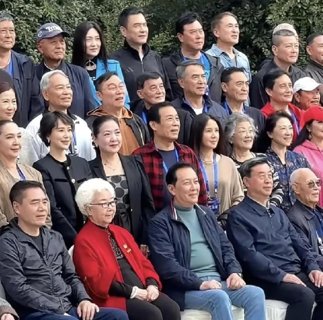 恕我眼拙,除了陈宝国、牛犇、唐国强、田华等,其他人不能分辨。 一张非常重量级的合影,老一代的艺术家几乎都囊括其中,像田华、牛犇、唐国强等都出现在照片中。这几位都是我非常喜欢的演员,他们演技精湛,更是把毕生的精力都投到了影视剧的发展上了。 诸如田华的《白毛女》,唐国强的《雍正王朝》以及陈宝国的《大宅门》,这几部堪称不世出的经典作品。 说句不托大的话,能出现在这张照片中,任何一位演员,单独拿出来都是泰斗级别的人物。 除了上述几位,图片一后排,最右边的女子大家还认识她吗?她的作品大部分人都应该看过。没错,该女子就是杨玉环的扮演者林芳兵。 可以说,林芳兵饰演的杨玉环不论是长相,身段,还是气质都非常贴合历史中那个真实的杨玉环。据说为了完美的演绎好杨玉环,林芳兵不惜增重几十斤,单论这一点,现在很多青年演员都是比不了的。 有一说一,合影中的演员们看着都挺面熟,一时间又叫不上名字。恕我眼拙,认出来的不多,大家独具慧眼,能认出几位来!
