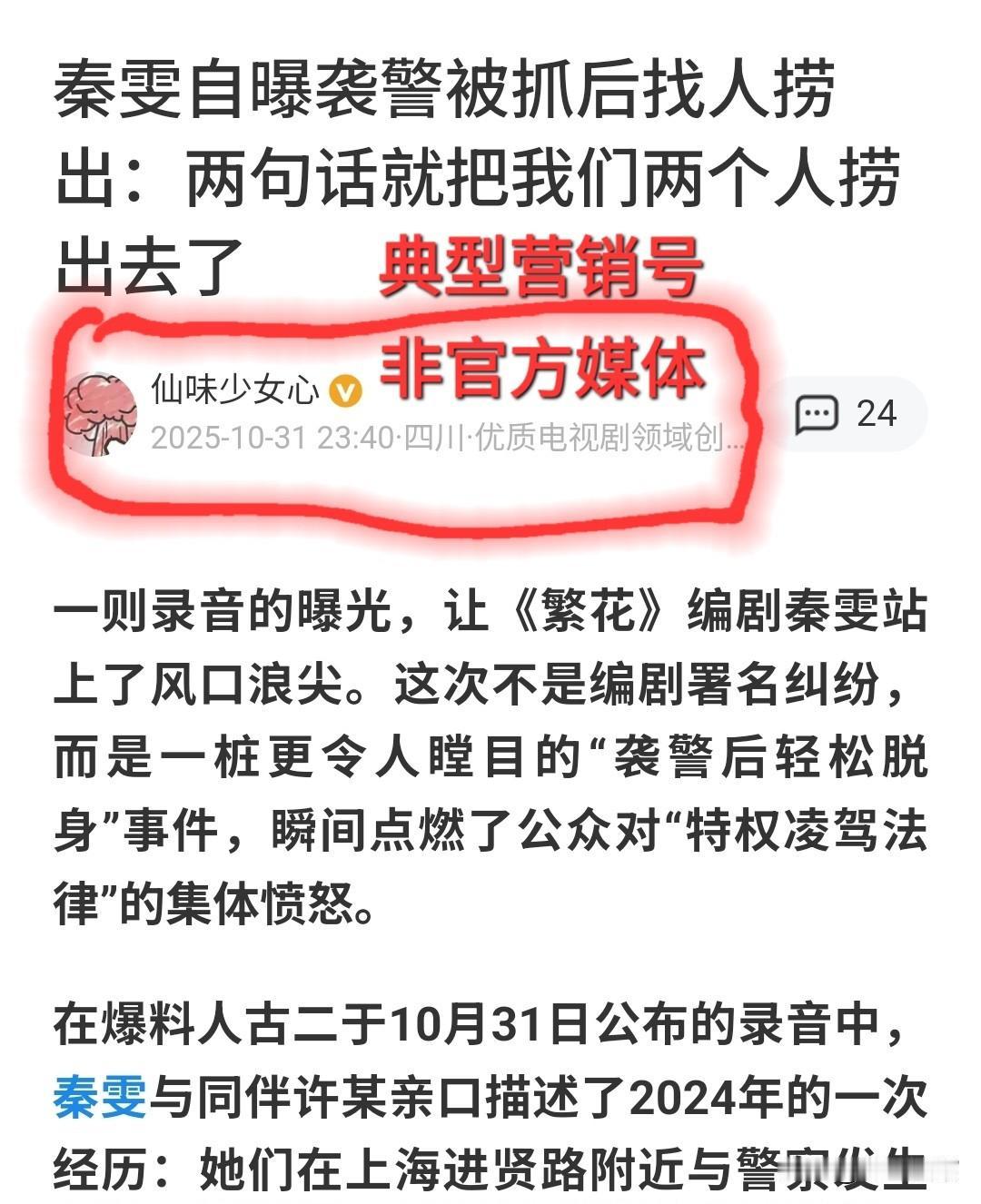 秦雯袭警捞人一事,有人说已有通报,已成立专案组,但我顺其路径查找,却未找到通报,到底官方有没有回应,变得扑朔迷离,如果哪位网友看到了官方通报,请在评论区贴一下,或者告知在哪能看到,我再去看看。 [注意:下方截图日期皆为昨天,也就是11月4日。本来昨晚想写这篇的,但是太困了就没写。] 事情是这样的,看到有些网友评论说上海黄浦警方已就秦雯袭警捞人传闻进行了通报,说成立了调查组,如图一。于是我就去找通报,想看看具体怎么说的。 可是,当我在网上搜索时,发现网友评论中这个说法只有一些自媒体营销号在说,且这类文章大多是本次舆论刚出现时的10月31号或11月1号发布的,比如图二、图三是一篇相关文章,图二中可以看到这是个营销号自媒体,不是传统媒体,发布时间是10月31号,图三是这篇文章中的一段,说黄浦分局是通过官微“警民直通车-黄浦”宣布的此事。 到这里我就出现两个疑惑,第一个是,为什么不见哪个官媒报道而都是营销号说的呢?第二个是,如果上海官方真的在10月31号或11月1号就已通报,那么为什么在11月3号仍有很多地方的正规媒体在呼吁官方出面回应呢,难道这些正规媒体在呼吁之前,也不去查看官方有没有通报回应过? 于是我顺着这类文章中给定的路径——官微“警民直通车-黄浦”去查找通报。既然是说官微,那就该是指官方微博,于是我去微博查找,确实有这个官微号,但是并未发现相关通报。此时想着是否营销号用词不准,可能不是在微博,而是其它平台上的官方账号,于是又查找今日头条平台上的号,也有一个“警民直通车黄浦”,但这个号已经很久没更新了。这两个号的截图请看图四、图五。 此后我又查看了黄浦公安的网站,也未见到相关通报,即图六。 这时又想到如今较大的媒体平台还有一个微信,于是去那边找到了黄浦公安号、黄浦网警号,还有黄浦政法委公号,都没有发现相关通报,即图七、图八、图九。 这几大平台都没有的话,我们应该可以说没有通报了吧?因为即便黄浦公安真的通报过,但是在某个不知名的小平台上,大多数人都不会知道的地方,那恐怕跟没通报过的效果差不多吧。 此外,在查找黄浦公安的这些媒体平台号时,也没局限于黄浦公安,也大概看了一些上海其他区公安的号,包括上海市公安的号,也都没有发现相关通报。 事情过程大概就是这个样子,那么问题来了: 第一个问题是,网上评论说上海警方已通报回应并成立调查组的网友,他们的信息是从哪里来的?是自己造谣胡说,还是看的那些自媒体营销号文章,如果是看的自媒体营销号,不知道自己去核实一下吗,自己也没看到通报原文,只听营销号一说,就在各种评论区评论? 第二个问题是,那些营销号的说法又是哪来的呢?如果警方真通报了,为什么几大平台都找不到,连自己的官方网站上都找不到,到底是在哪个平台通报的?如果没通报,营销号为什么要这样说得有鼻子有眼的,连具体平台——官微“警民直通车-黄浦”——都指出来了。 那么这就有三种可能,一是写营销号文章的人胡编乱说,二是营销号文章就不是人写的而是人工智能AI生成的,三是“警民直通车-黄浦”这个官微真的通报过但随即又删除了…… 不过这第三种可能的可能性也不大,因为警方为什么要在自己的官微发布通报随即又删除呢,即便通报中有错误,需要更改,那删除之后也该再发出新的啊,可是并没有,除非是发布后觉得此时还不宜发布,又撤下了,那这也太儿戏了吧,也不符合警方的严谨作风啊。还有就是,如果那个官微发布之后又删除,那网上这么多人,总会有在没删除之前截图保存的吧,怎么也不见一张截图? 所以我倾向于认为,黄浦警方就没在官微发布过此事的通报,营销号是乱写,至于是用人工智能AI生成文章才造成了这个错误,还是故意胡编乱写来误导大众,目前还难以判断。 当然,也可能确实发布过通报,是我自己能力有限,尚无法找到该通报,那就烦请看到官方通报的网友在评论区贴一下,或者告知我在哪里能看到,我去看看。