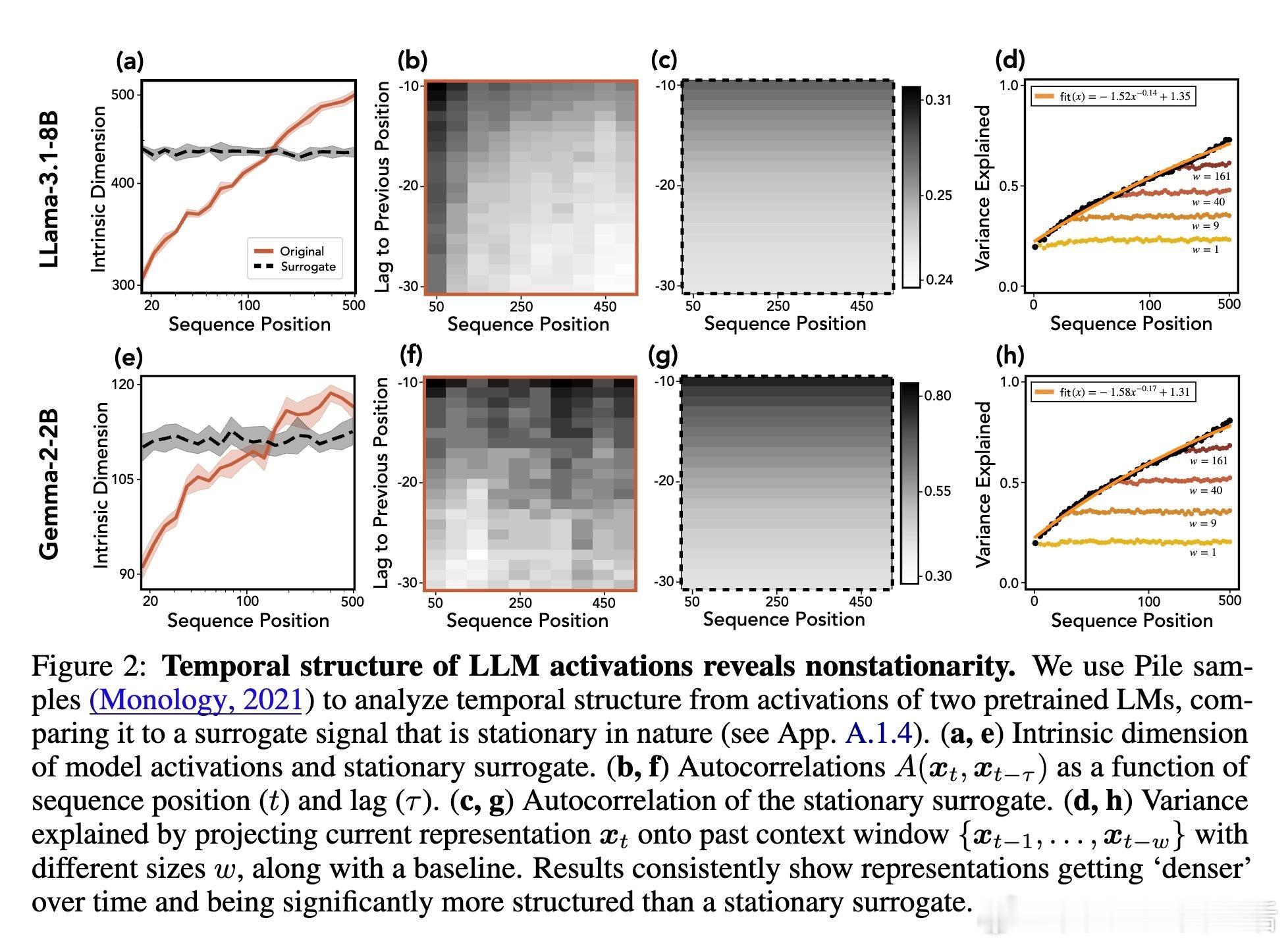 - 激活在不同时间点间存在强相关性,且这种相关性随上下文变化而变化,表现出非平稳性。