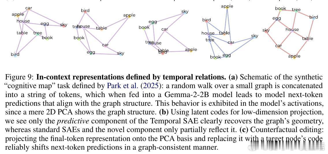- 在上下文构造的认知图谱任务中,预测成分重现了图结构,并支持通过干预latent实现语义调整,体现强大的时序推理能力。