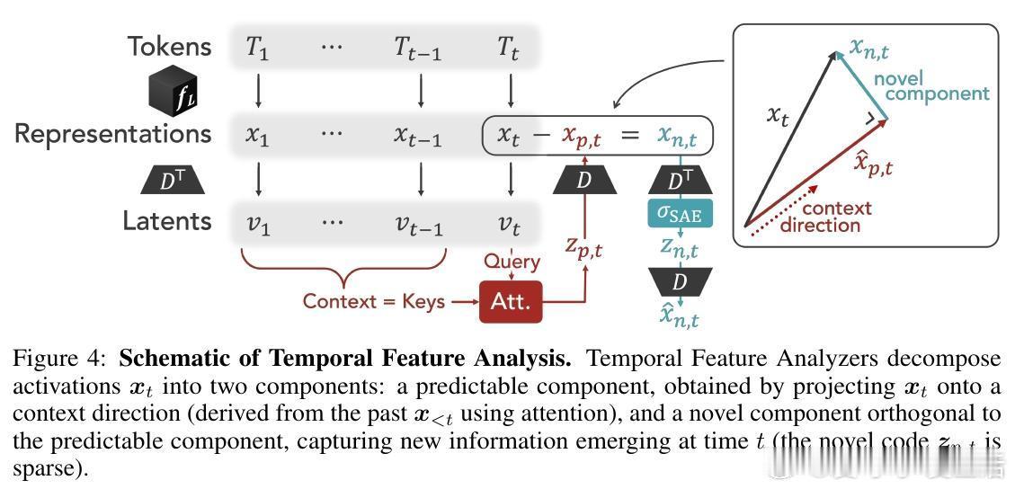 - 可预测成分由当前激活在过去上下文子空间上的投影构成,捕获慢变、上下文相关的信息。