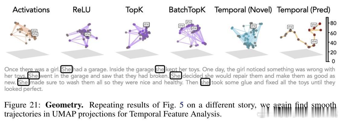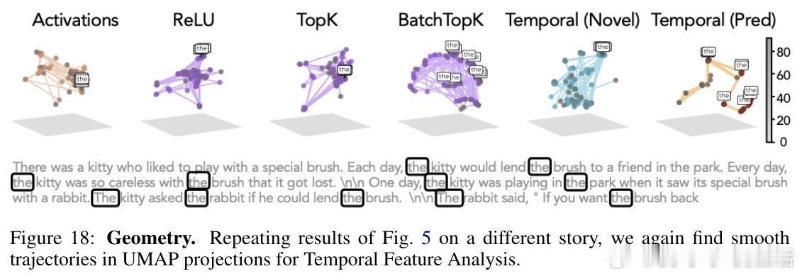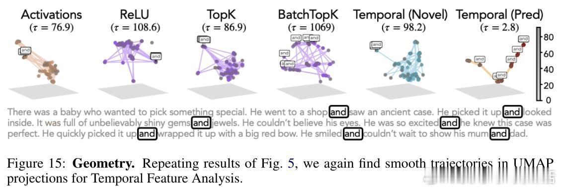 - 当激活维度超过预设稀疏预算时,SAEs会出现“支持切换”现象,即相邻时间点激活代码大不相同,破坏局部时间连续性和语义结构。