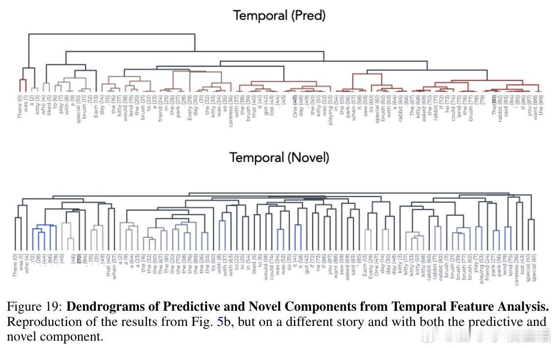 - 在故事解析中,预测成分刻画了事件边界,呈现平滑的时间轨迹,类似神经科学中的“时间展开”现象。