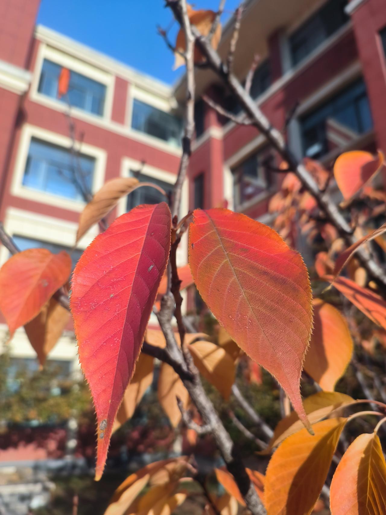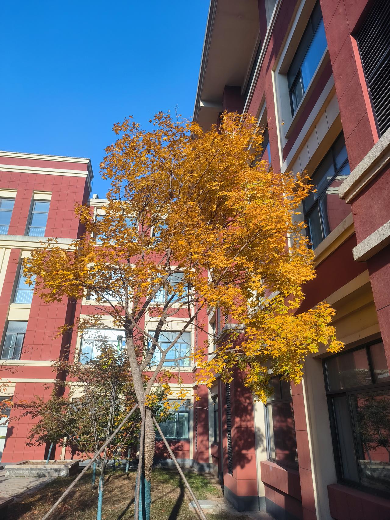 我上课要经过立信楼与立志楼之间的小广场,广场的边上,有几处樱树和枫树,秋天就到了它们最得意的时候,阳光斜照的时候,黄色的树子更黄,红色的更娇艳,晃眼,让你忍不住停下脚步,拿出手机拍几张照片。 我以前工作过的单位停车场,有几棵银杏,树不大,但是叶子茂盛,每到秋天就吸引很多学生,在那里叽叽喳喳,捡银杏的叶子。有几位女教师,喜欢树叶,让学生捡树叶做书签,在树叶上写小诗,用树叶练书法。不喜欢写字的学生,也觉得新奇。每到下课,就去寻找最大的银杏叶。那些学生应该上大学去了,那些银杏叶还在书中做着梦吗? 现在很多人很现实,做的事情目的明确,学生也开始变得有些现实,只要说考试要考,就会认真学。但是慢慢地,却发现没有了乐趣。生活中总是有一些看似无用的东西,却是那么美好。 一片落叶,悠然而落,不为秋风,也不为冬雪,就是为了轻盈地跳一段舞。没有人欣赏不要紧,没有留下剧照也无所谓,快乐的就挺好。校园风景 深秋校园风光