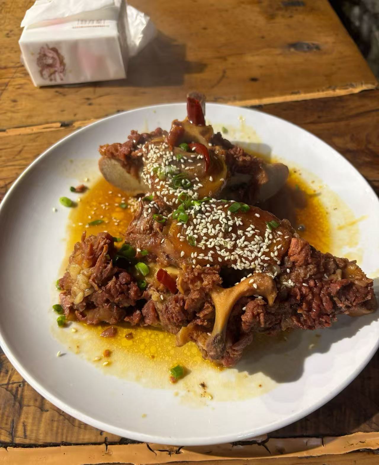 2️⃣.辣卤飞机骨,超大一根直接上手啃,卤汁渗进每一丝肌理,鲜辣好吃。