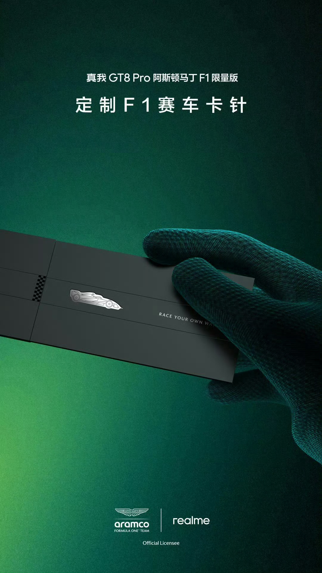 真我GT8 Pro和阿斯顿马丁F1联手打造的这个联名限量款,真挺好看的,礼盒套装诚意也很足,我特别喜欢这个F1赛车卡针……[色]