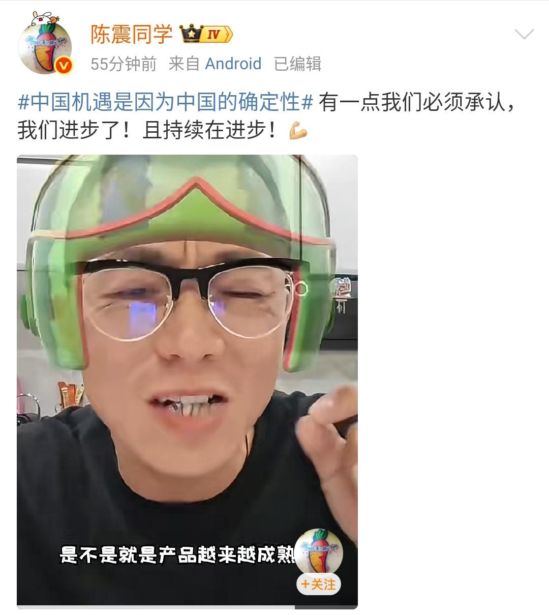 陈震:中国机遇是因为中国的确定性!有一点我们必须承认,我们进步了!且持续在进步![加油] 陈震说以前挑一辆车的毛病,真的能挑出来很多毛病,特别是有些设计和一些功能确实不好用。 现在中国汽车工业确实是在进步的,现在很难挑出一台车有什么硬伤,整个汽车行业无论是从工业设计还是产品质量方面,均有了大幅度进步。 这一点不假,在20年前大部分人想要买手机之类的消费电子产品,优先的都是考虑国外品牌吧。 现在买手机除了苹果,其他的基本上都是国产的了,当然还有少部分人会使用三星。 各位是怎么看的?欢迎评论区留言。
