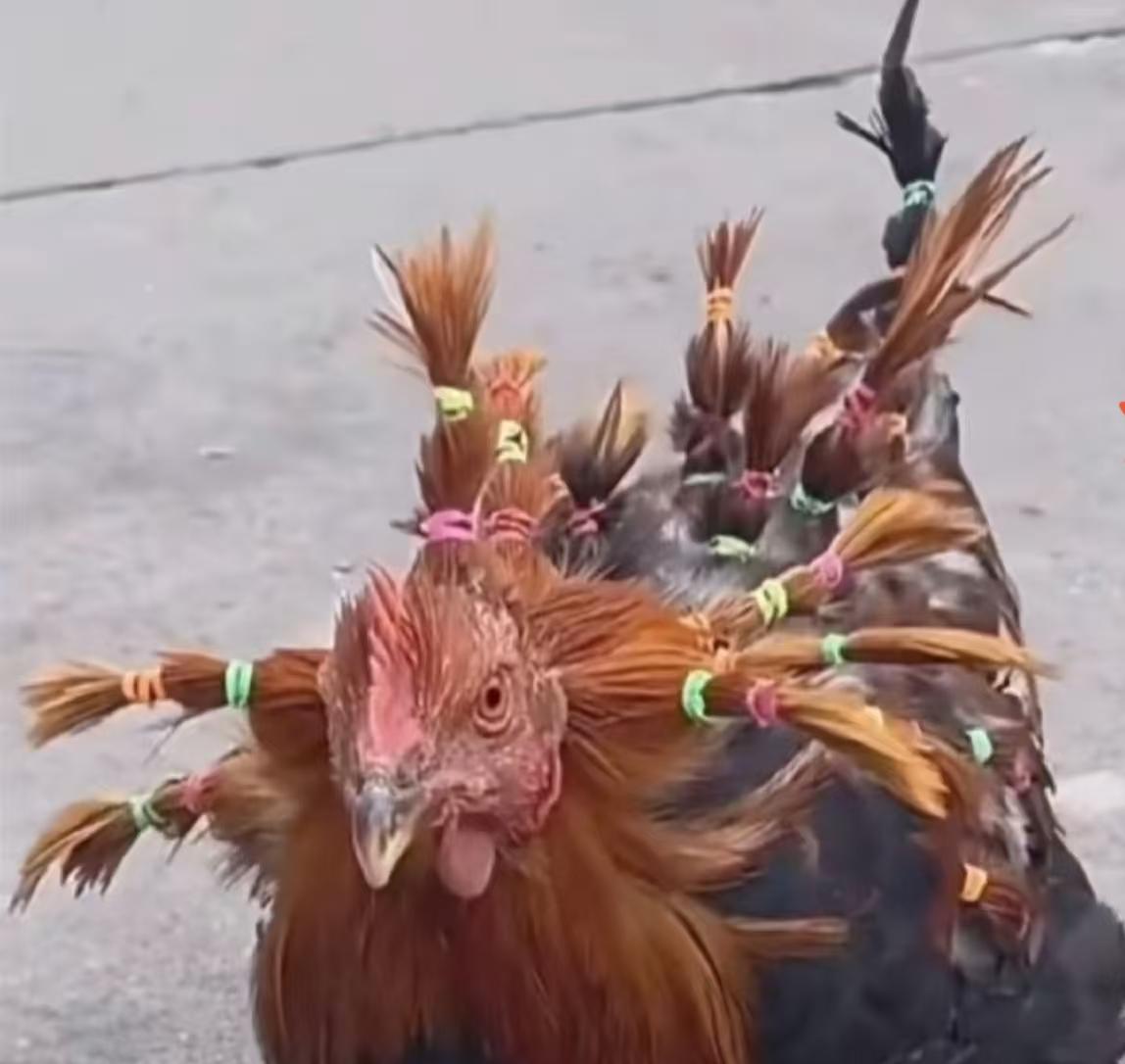 咱总说相亲要捯饬明白, 穿得亮眼才能吸引好感, 可没想到刷到这只“盛装”的鸡,差点以为禽类也卷相亲局了! 你看它满头彩色小辫,浑身羽毛都扎得精致,这哪是普通鸡,分明是被主人当“小公主”宠着的!现在养宠物越来越卷,有人养猫狗做造型,有人却把鸡捯饬得比人还精致, 你们见过比这更“精致”的宠物吗?来评论区开开眼!