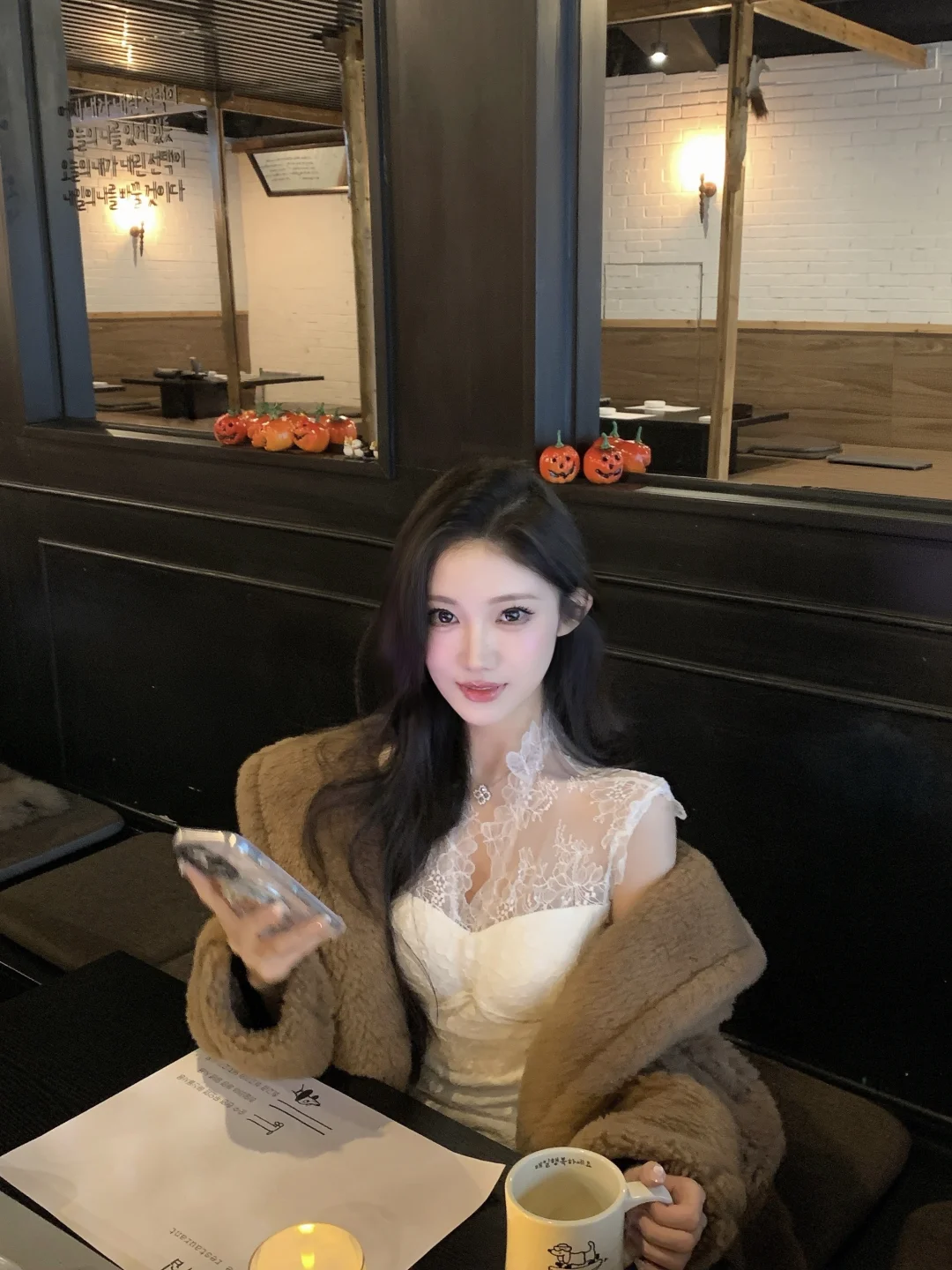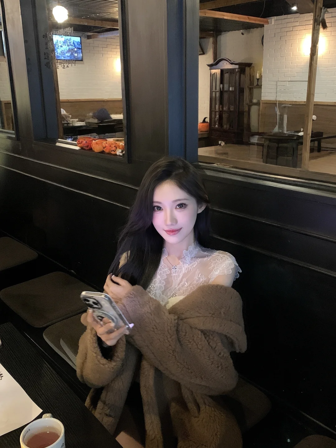 晚上走在街上,看见个少女,长得那叫一个好看。她脸上化着精致的淡妆,眼睛亮晶晶的。