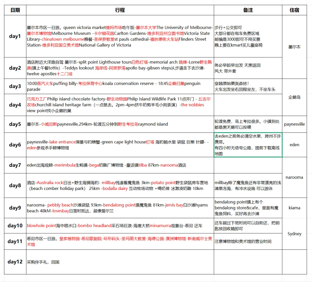 ⚠️字数限制,部分地名用中文。英文名都在图3行程表中,大家自取对照