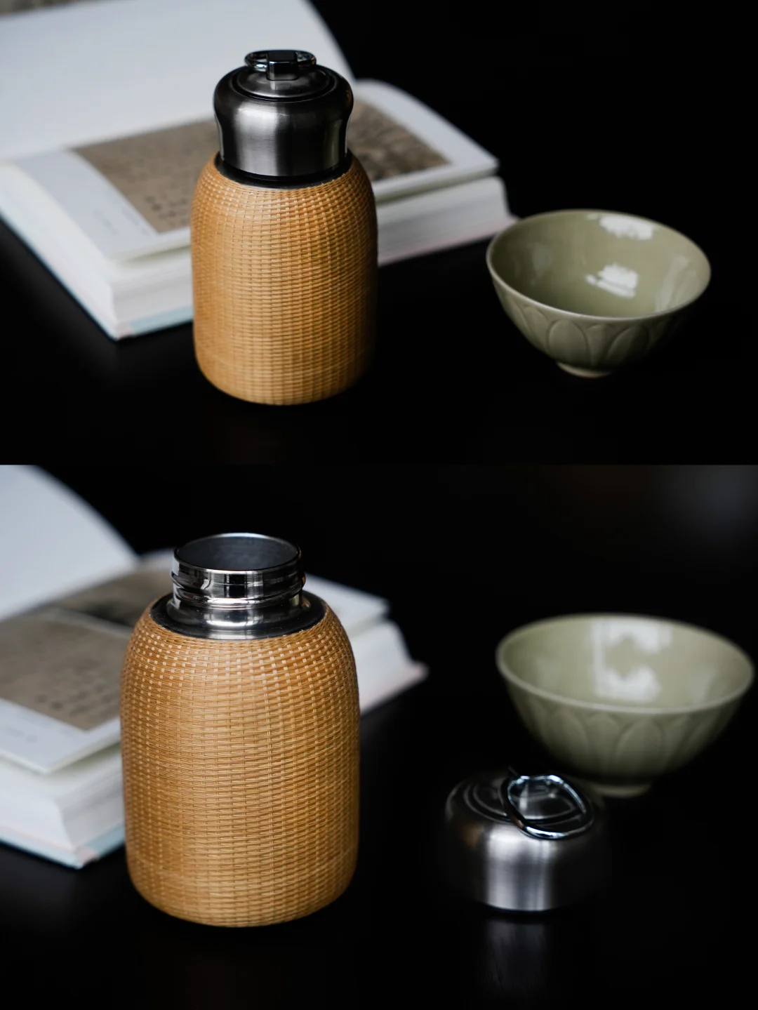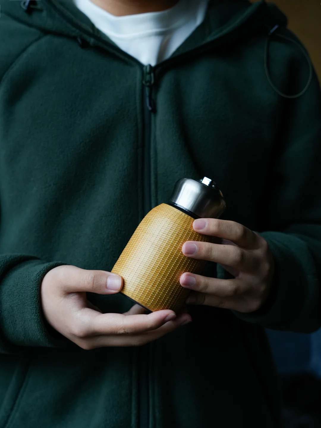 圆圆润润的 拿在手上手感特别舒服 出门携带也很方便 还是一个暖手宝~ 每一根竹丝 皆出自超60年工龄的老师傅之手 手工开竹、破篾、打磨至光滑 再与杯身紧密编织相连 保留原色竹木纹理 散发竹子天然的清新气息 杯身采用304食品级不锈钢内胆 凑近品一口热茶 香气入鼻,暖意入口 要漂亮先养内 气血充盈才是真的美 记得多喝水!!!