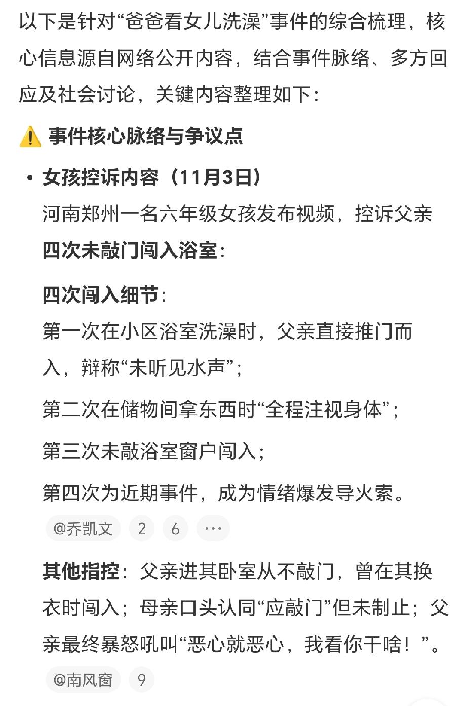 河南12岁女孩儿被父亲4次偷看洗澡事件反转了。原来卫生间的门锁坏了很久,女孩还怀