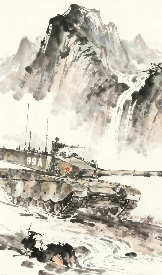 这居然是中国军工官方发的图!中国传统山水画就是绝啊!六幅画依次是《老子的枪》《老子的天》《老子的空》《老子的地》《老子的海》《老子的山》。