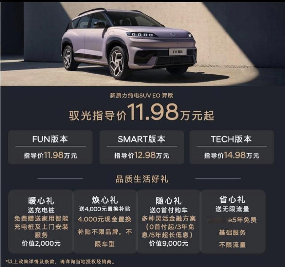 电车开一年电费才千把块,油车随便加加油就得上万,这笔账谁算谁明白!现在电车技术越来越成熟,开个五年换电池基本不用掏钱,而同价位的油车光换个电瓶都得大几百。要是开十年打算换车,30万的电车可能只能卖个2万左右,油车倒是还能多卖点——不过仔细想想,这十年省下的油费早就把差价补回来了! 说到选电车,合资品牌的品控确实让人更放心。像北京现代新推出的纯电SUV EO羿欧,10月底刚上市,就挺有爆款潜质。前脸那个水晶方块大灯特别醒目,晚上亮起来倍儿有精神。车身长度4米6多,后排空间却做得特别宽敞,一家人坐进去腿脚都能伸展开。 车里最吸睛的是27英寸大屏,用的是最新款芯片,操作起来跟平板电脑一样顺滑。还有个黑科技能把导航信息投射到前挡风玻璃上,开车不用老低头看屏幕。安全性也下足了功夫,车身钢架结实,续航最高能到722公里,周末带全家去周边城市玩个来回完全没压力。 这车不像有些新势力只会堆参数,而是实打实从家用角度考虑。要是你想买台靠谱不闹心的纯电家用车,真该去4S店试试这台——毕竟现代这种老牌子造的电动车,质量还是比杂牌军让人安心多了!