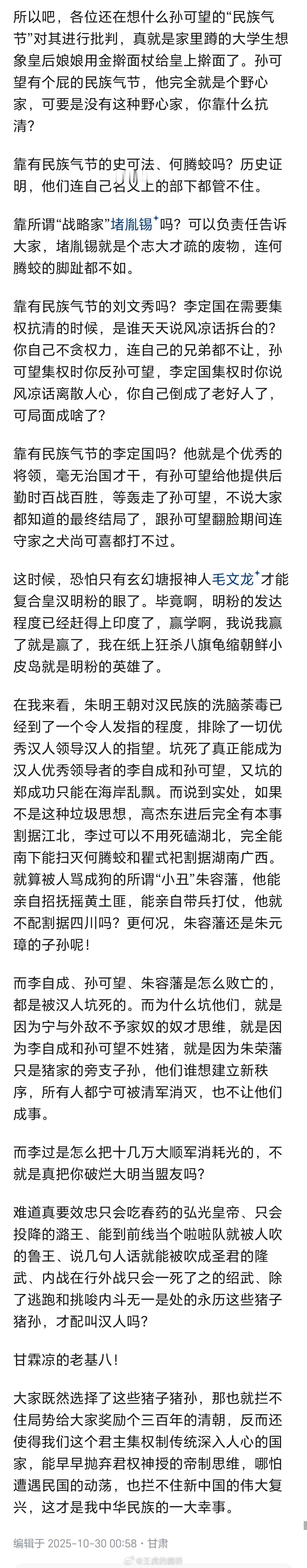关毛太师说得非常对,孙可望当然是野心家,甚至国姓爷也不是那么想要守臣节,但没有这些人你靠什么抗清?