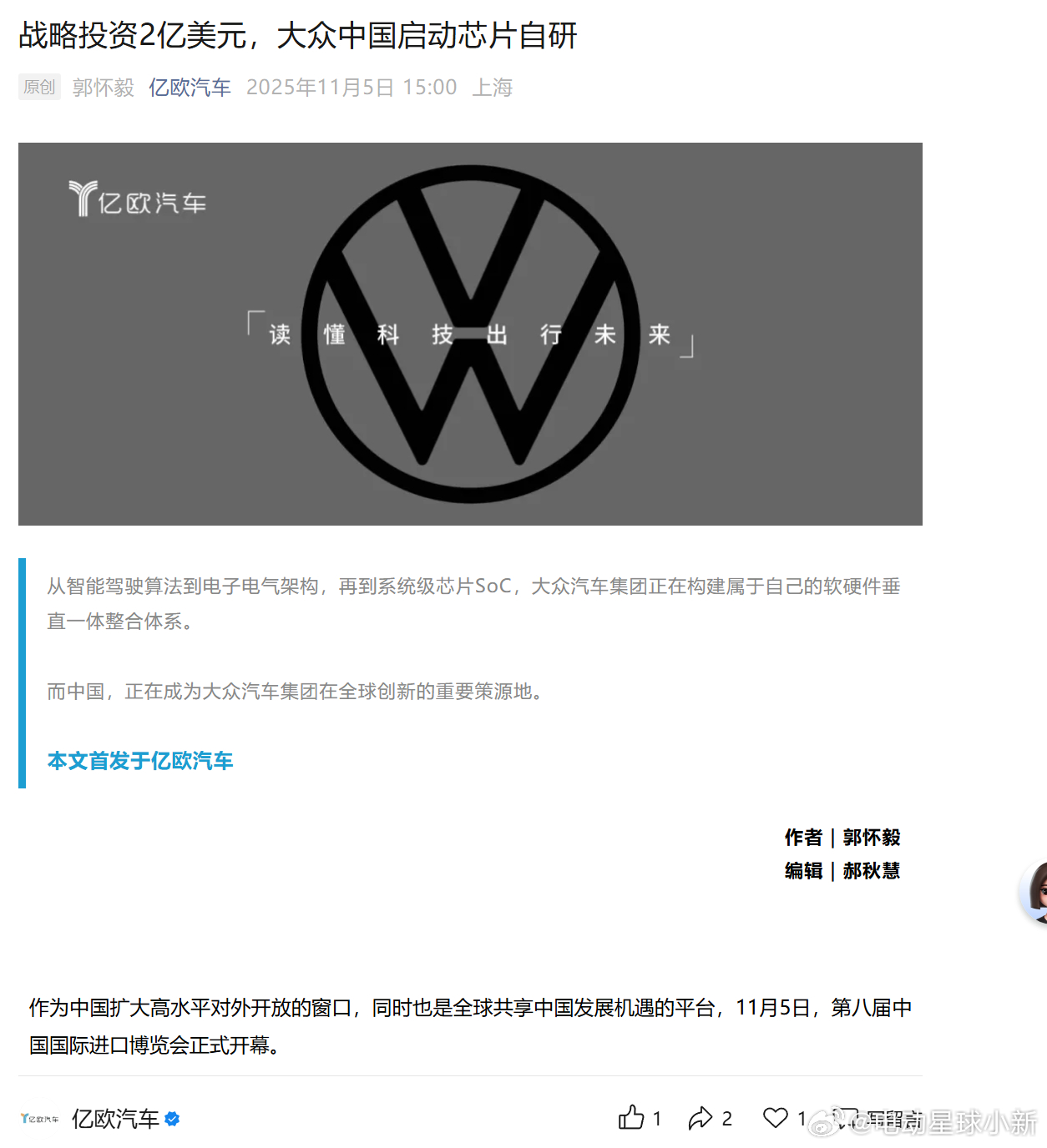 大众汽车宣布将在中国自主设计与研发系统级芯片