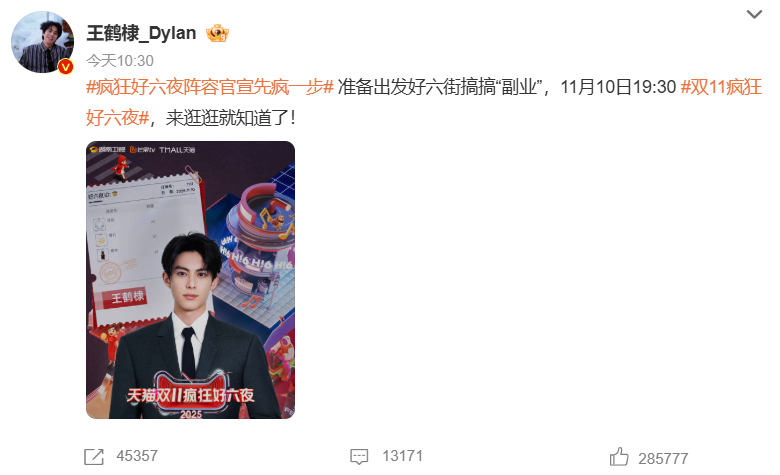 王鹤棣加盟疯狂好六夜王鹤棣加盟11月10号《双11疯狂好六夜》啦,期待棣棣在舞台上的表现!谢娜王鹤棣加盟疯狂好六夜