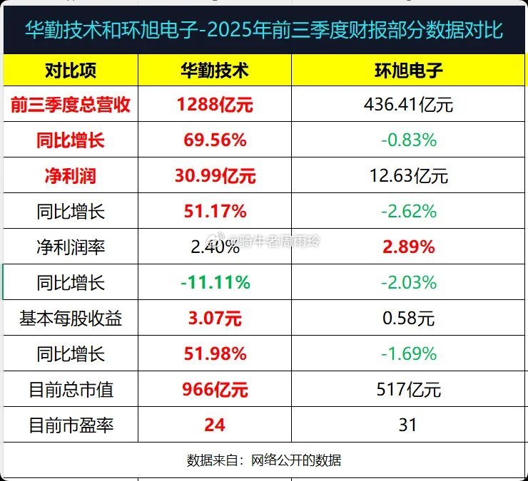 消费电子领域企业华勤技术和环旭电子2025年前三季度财报部分数据对比1、华勤技术
