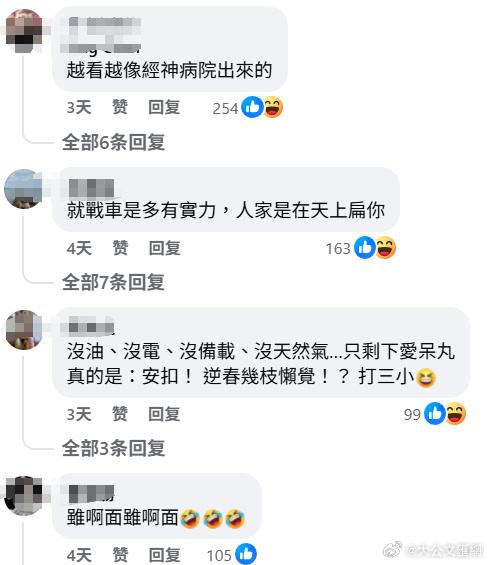 网友:远看汉奸坐着拖拉机,近看还真是个汉奸坐着拖拉机!一脸汉奸相难道还能开着拖拉机拒统?统一是大势所趋,人心所向!