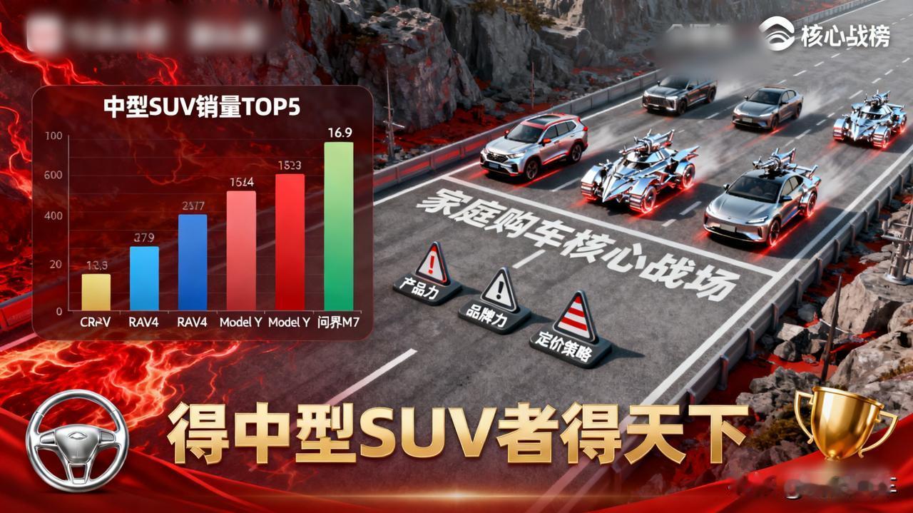 为什么说“得中型SUV市场者得天下”? 看看销量榜,CR-V、RAV4、Model Y、问界M7……这个级别是家庭购车的核心战场,竞争最惨烈,也最能体现一个品牌的综合实力。 产品力、品牌、定价稍有偏差,立刻被淘汰。 华为问界销量 问界m8销量 车企销量排行 家用SUV 家用suv 上热门crv 丰田本田crv