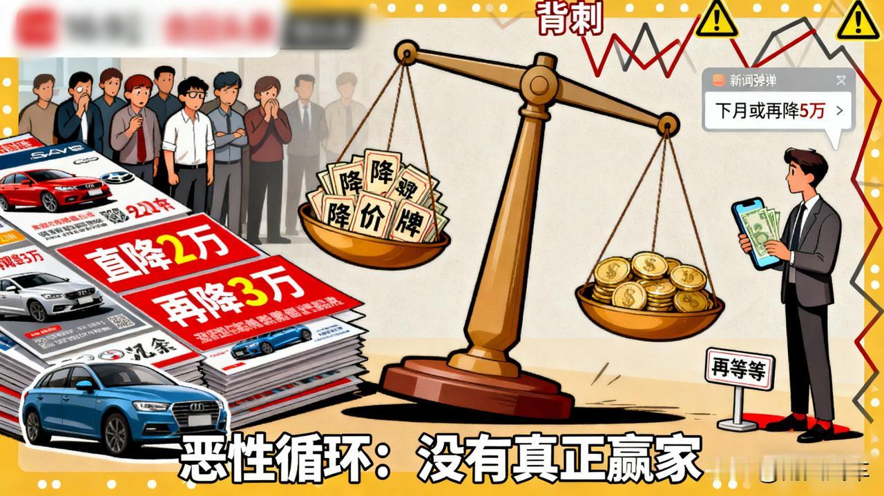 车企“降价保量”的背后,是消费者的持币观望? 今天你降两万,明天我降三万。消费者都学聪明了,知道后面可能还有更大优惠,反而不敢下手了。 恶性循环之下,品牌价值受损,老车主被背刺,没有真正的赢家。 汽车降价战 B级车降价潮 汽车降价风潮 汽车价格战 豪华车降价潮 车市降价风云 车企价格乱战