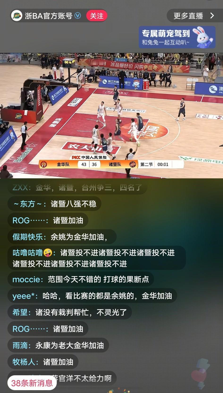 浙ba今天只安排了一场比赛,由金华主场迎接诸暨队的挑战。诸暨队凭借13号球员中场压哨三分,将比分追到39:43。 积分榜上,目前诸暨7胜4负积18分排名第四,金华6胜5负积17分排名第五。双方都在为进入季后赛做着最后的努力,如果本场比赛诸暨获胜,那他就拉开了金华队的差距,稳固了自己第四的位置,如果金华获胜,那金华就把诸暨挤下来了。 诸暨篮球在浙江地区一直享有盛誉,不曾想本届浙ba状态起起伏伏,一直挣扎在季后赛及格线附近,如果最终没有出线,那就真的有付“宇宙诸暨”的盛名了!