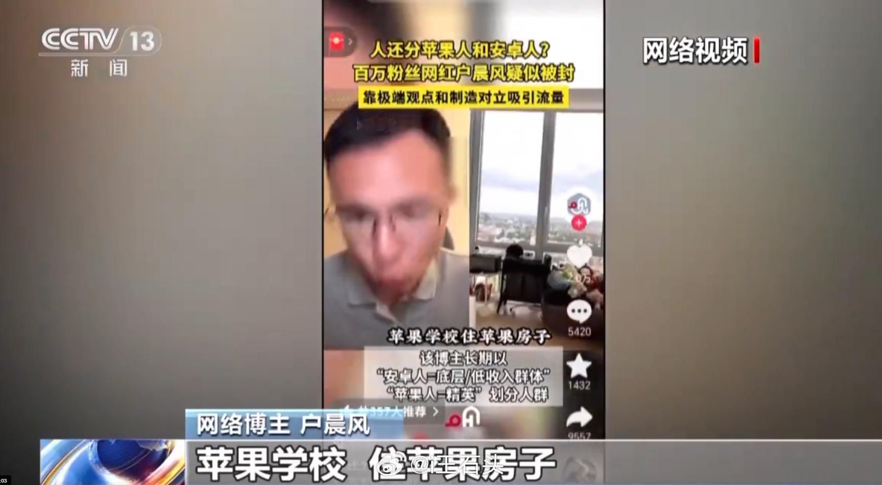 户晨风也是出息了,直接被央视新闻当负面典型讲了几分钟。