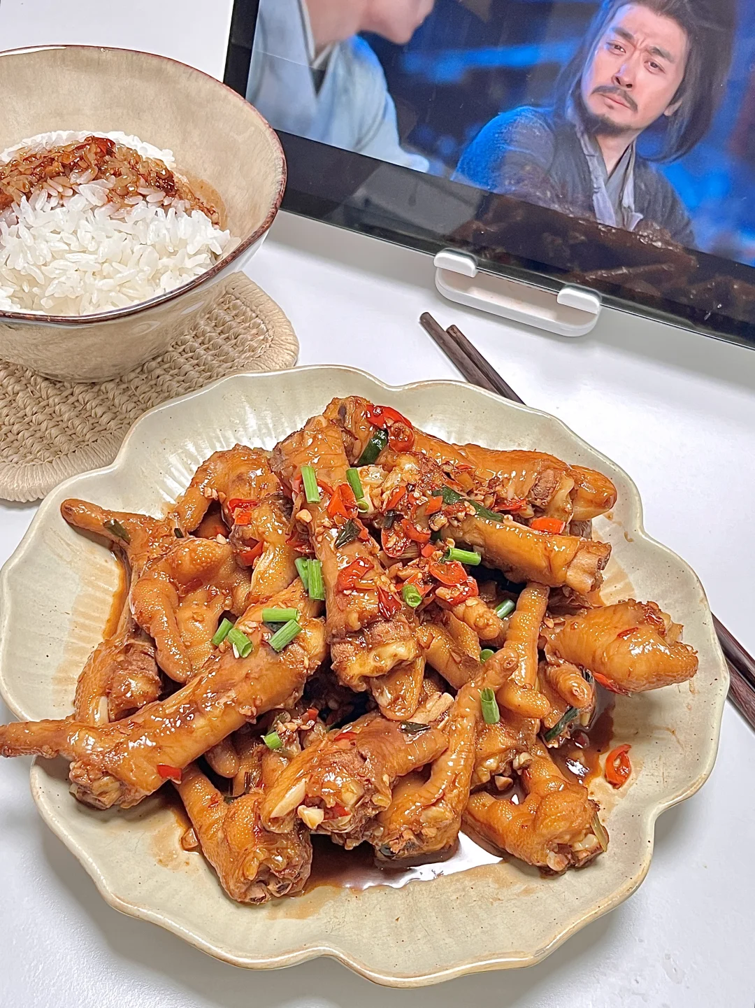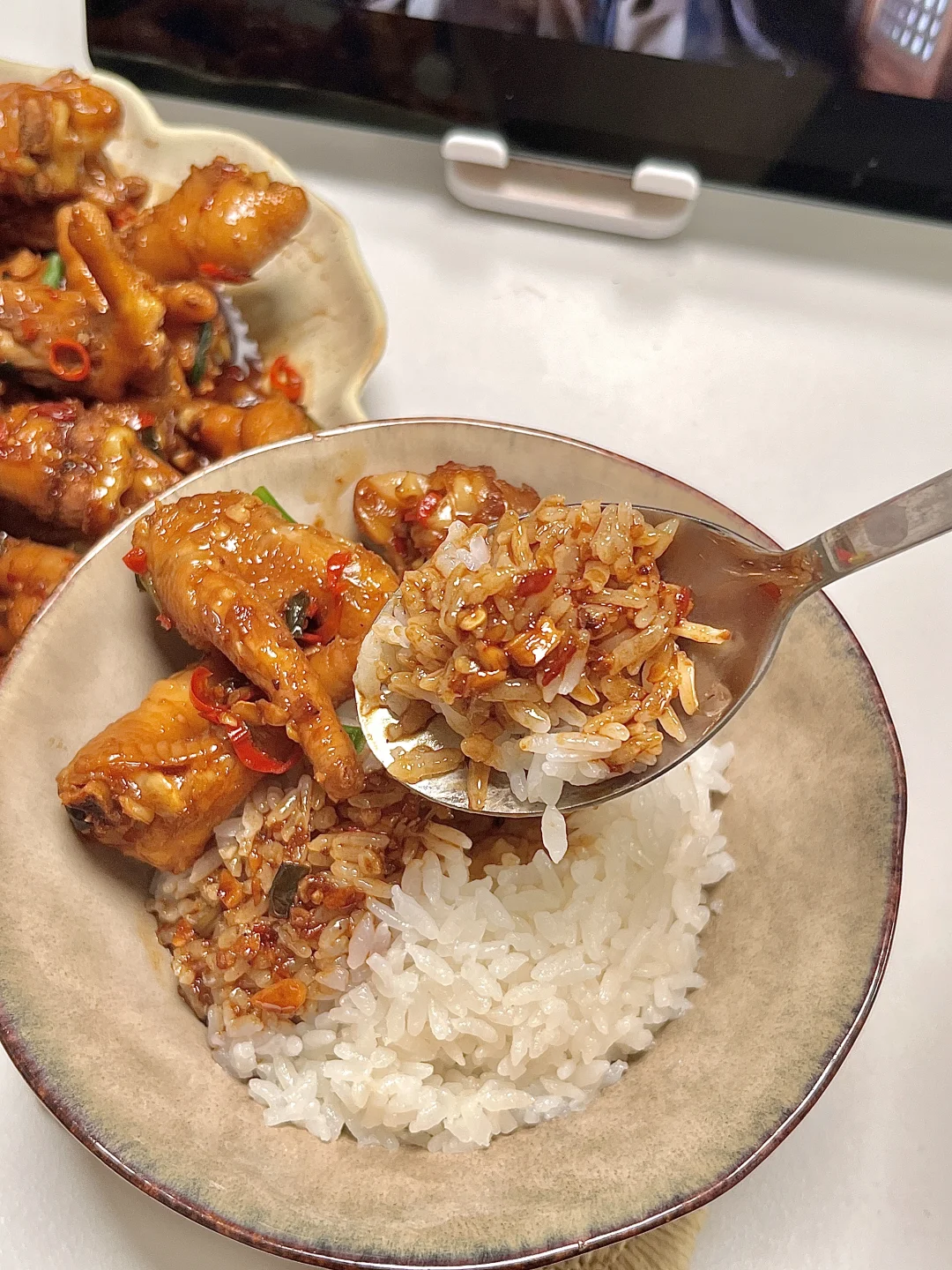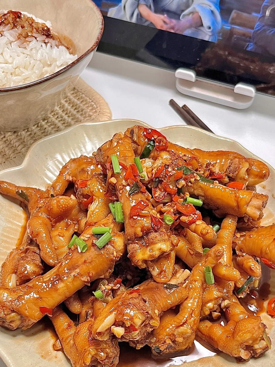 夏日消暑风味集 🍴今日份一人食: 辣炒鸡爪饭 冷萃绿茶🍵 . 如果你也爱吃鸡爪,那不要错过这个辣炒鸡爪了,软糯脱骨,嗦的停不下来[棒R]浓郁醇厚的酱汁浇盖在米饭🍚上,谁吃都得香迷糊了~爱吃的宝子一定要试试呀✌🏻