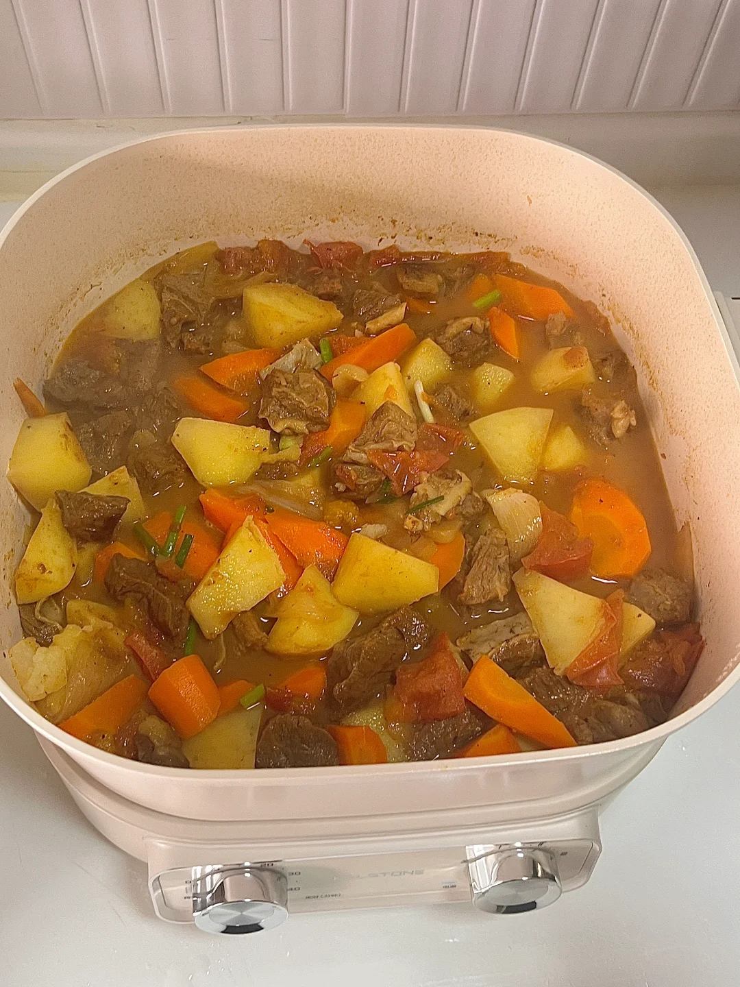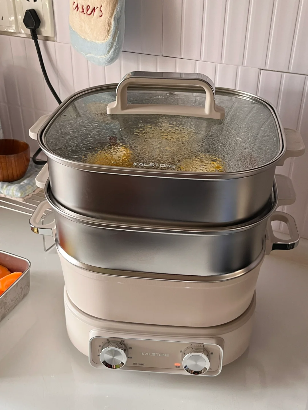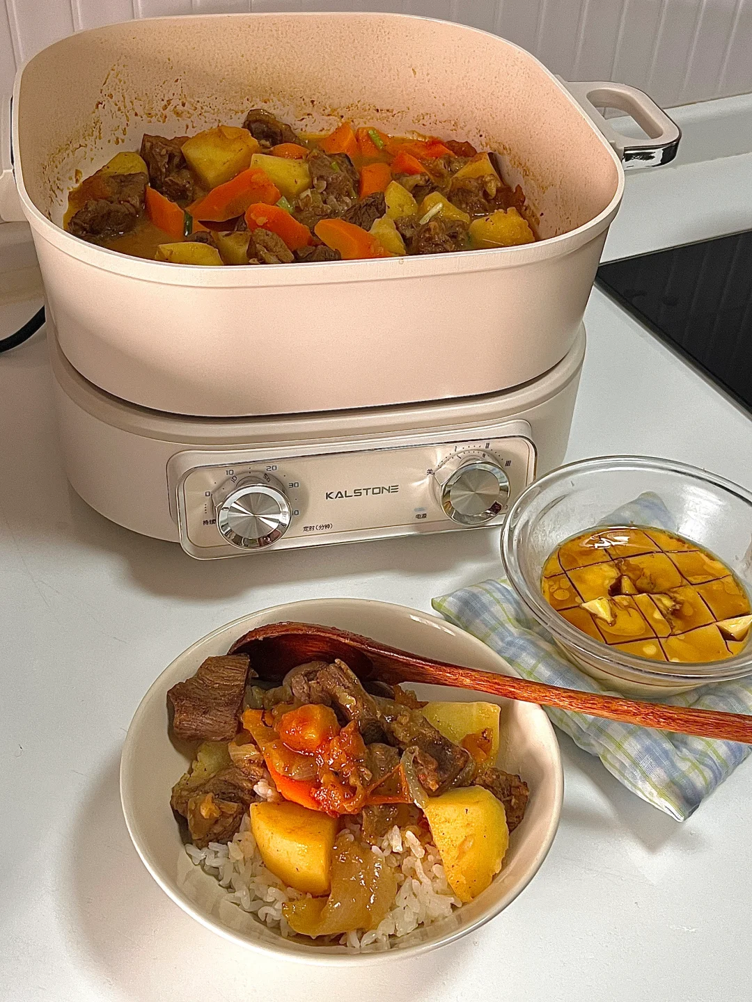 今天晚餐长这样 今日份二人食: 番茄🍅土豆炖牛肋条🥩 鸡蛋羹&玉米🌽 ~ 吃健康蒸煮食物🫕真的会很舒服~ 图片上 主食 俩菜都是一锅出,省时省力~ 新入的做饭好搭子、巢石N1多功能料理锅,不仅颜值在线,实用度也很高,双层蒸格 平时蒸米饭🍚蒸菜一锅就出。有定时功能 全程免看火 省时省心~ 6L大容量无论是做一人食还是聚餐都够用。还是蛮实用的! 做法看图片⬆️~