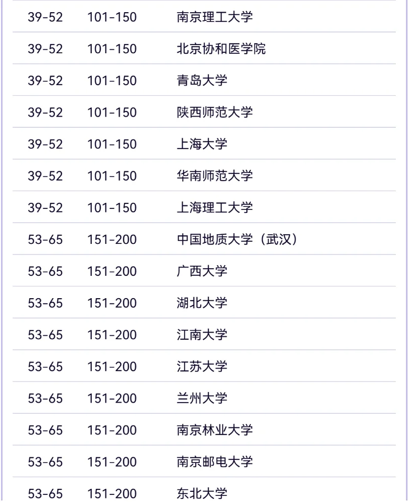 2024年排名覆盖55个学科,涉及理学、工学、生命科学、医学和社会科学五大领域。此次排名的对象为全球3000余所大学,共有来自96个国家和地区的1900余所高校最终出现在各个学科的榜单上。