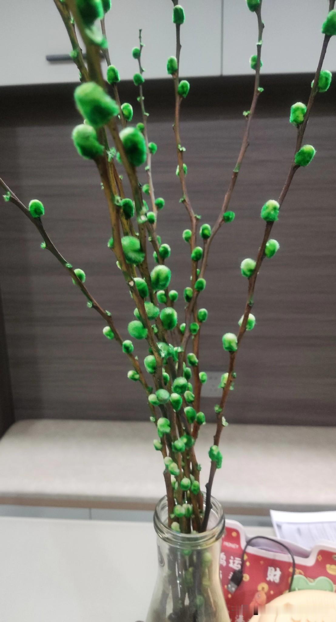 你们看我桌上这把“绿毛球”!刚摆上的时候还以为是毛绒玩具,凑近一摸才知道是银柳——这毛茸茸的小芽裹满春天气息,往玻璃罐里一插,整个桌面都亮堂了! 关键这玩意儿巨好养,不用管不用晒,倒点水就能支棱好久。本来是凑单买的,结果现在成了我办公桌上的“治愈担当”,摸两下连敲键盘都顺了!你们猜这一把才花了多少钱?