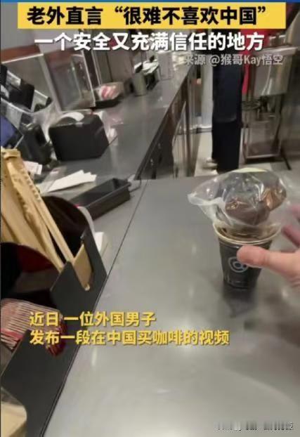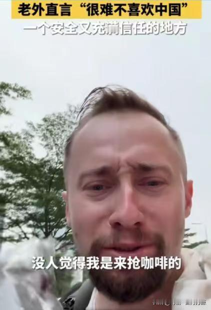 这样的中国怎能让外国人不喜欢? 接过服务员递来的咖啡,他哭了。 不是受到了委屈,而是感动 。 因为在他们国家买咖啡你是要先付钱的,有着许许多多的人会0元购。 但是他在中国感觉到了信任,表示没人会感觉他是来抢咖啡的,很难不喜欢中国一个又安全又充满信任的地方