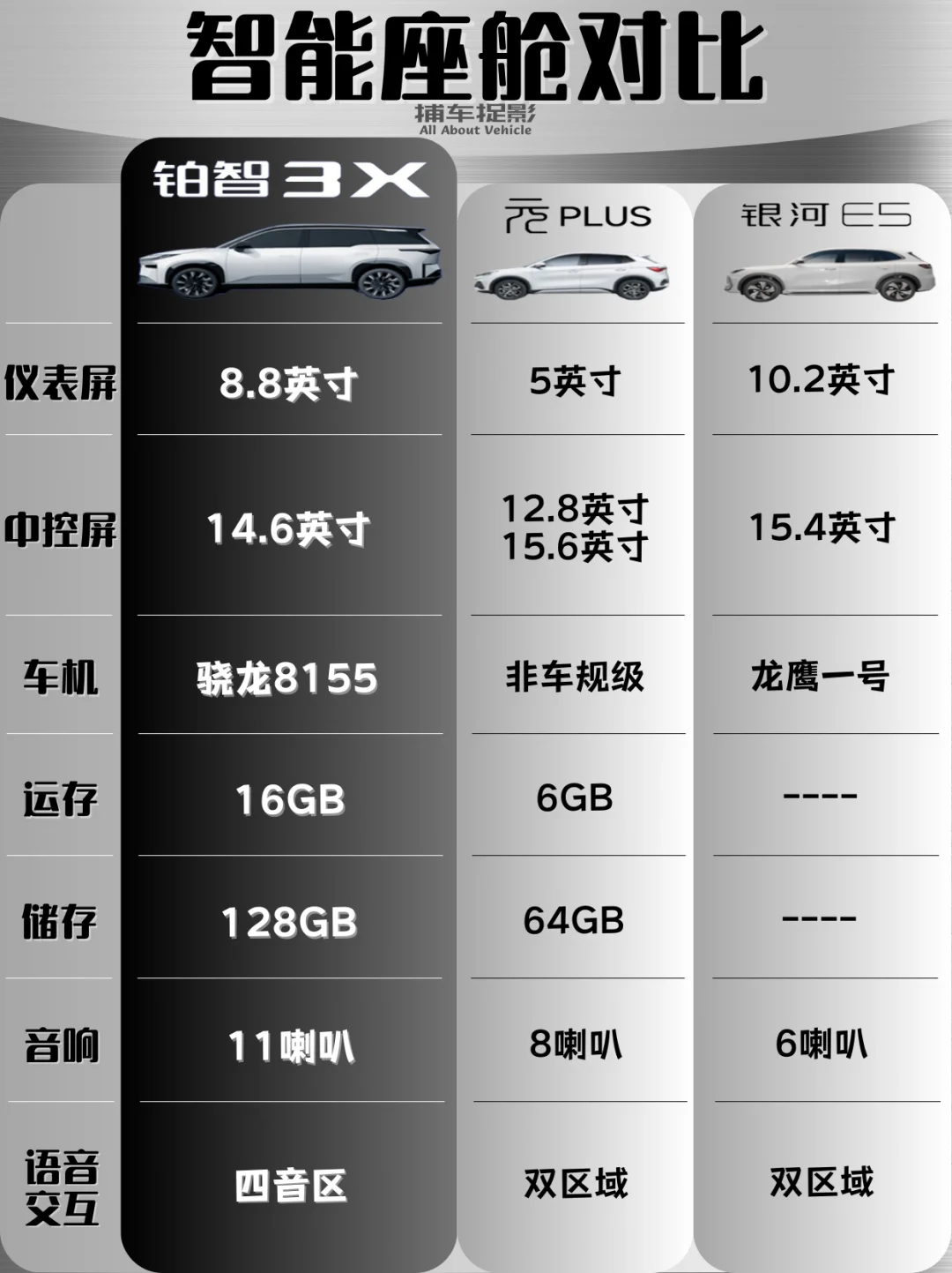 👉先来说说座舱舒适度,从轴距数据来看,三款车都挺宽敞的。不过我个人更喜欢铂智 3X 的四音区独立语音控制,这种配置通常只出现在高端旗舰新能源车型上,而铂智 3X 作为一款十万级别的车型,能有这样的配置,性价比真的超高!💥