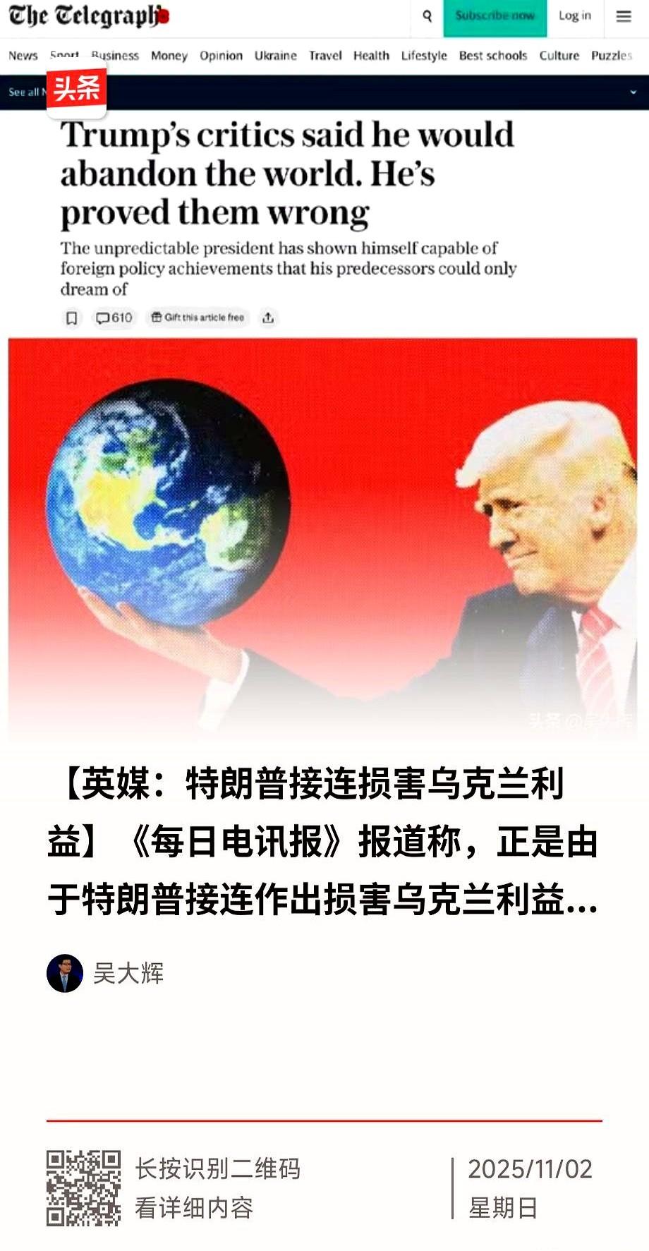 英国人居然把枪口对准了特朗普。 就差指着鼻子骂了:就是你,把乌克兰给坑惨了! 我当时看到这新闻,第一反应是,太阳从西边出来了? 特朗普干了啥?也特简单,就是把对乌克兰免费援助的水龙头一关,然后手一摊:你们北约的兄弟们,自己掏钱吧。 这下好了,欧洲直接炸锅。 本来就不是铁板一块,东欧西欧,有钱的没钱的,想法能一样吗?桌上那盘菜就那么点,谁都想多吃一口,谁也不想多掏一分钱。 美国呢,算盘打得精着呢,嘴上都是主义,心里全是生意,就想从欧洲这块肥肉上多刮点油水下来。 欧洲呢,早就想摆脱美国这个“大哥”了,嫌他管得宽,还老让他掏钱。 都说英美是穿一条裤子的铁哥们,我看啊,就是个临时的生意搭子。 所以英国这时候跳出来“仗义执言”?别傻了。 骂特朗普是表演,想在这一盘散沙的欧洲里,抢个带头大哥的位置,才是真的。 哪有什么永远的朋友,只有永远的利益。 这话真是一句顶一万句。