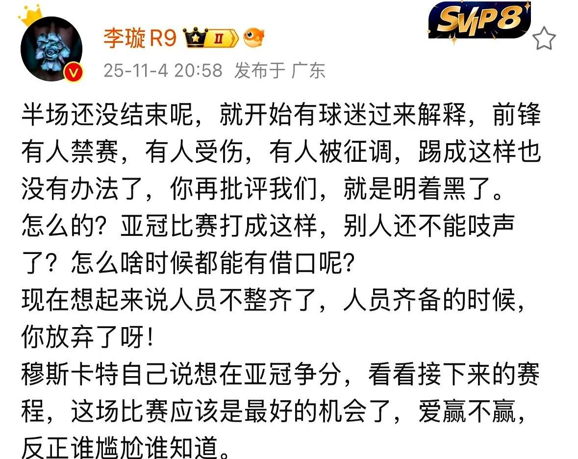 输给泰国球队,丢人吗? 丢人。 但更丢人的是,这脸是自己凑上去让人家打的。 当初人员最齐整、状态最好的时候,亚冠?爱谁谁。藏着掖着,当个练兵场,觉得靠小聪明就能把事儿办了。 现在好了,真想玩命了,想起来要为国争光了,发现晚了。 足球这东西,特别真实。你之前怎么糊弄它,它之后就怎么报复你。它不认你那些小算盘,不吃你那套“我想发力再发力”的逻辑。 你欠下的债,总得还。 这不是什么技不如人的问题,纯粹是态度和脑子的问题。 骨子里就没把这事当回事,觉得老子想什么时候赢,就能什么时候赢。 结果呢? 生活专治各种不服,足球也一样。 当初那个算盘打得噼里啪啦响,以为自己是运筹帷幄的棋手。 现在一看,算盘珠子全崩自己脸上了。 疼,且难看。