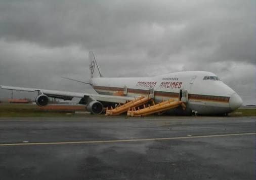 喀麦隆航空公司070航班,一架从杜阿拉飞往巴黎的波音747,在巴黎戴高乐机场(CDG)降落时冲出跑道。 起落架被撕裂,机上203人紧急撤离。 据称,飞行员在降落过程中与一名空乘人员调情。