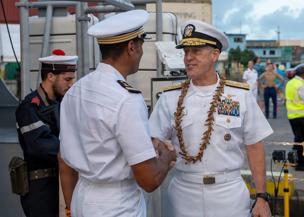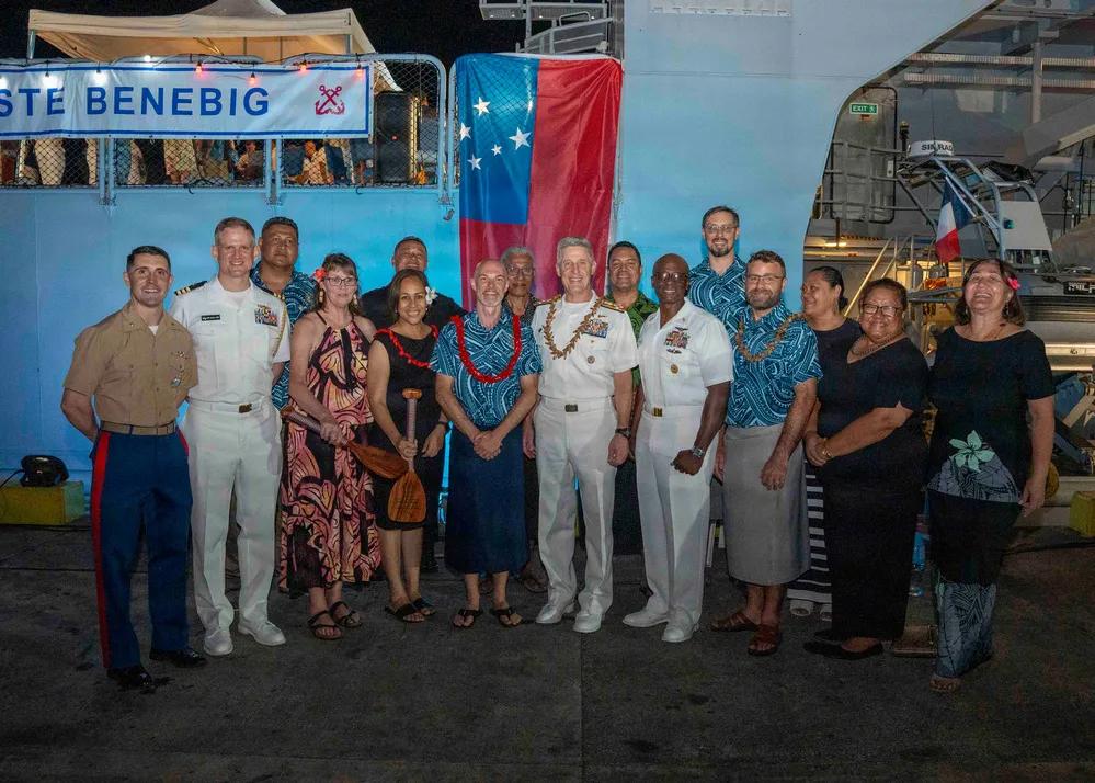 美国不遗余力在拉拢南太平洋岛国。 2025年10月31日,美国海军太平洋舰队司令史蒂夫·科勒上将、美国太平洋舰队总司令唐·戴维斯,以及驻萨摩亚美国大使馆临时代办丹尼尔·塔拉帕基,在萨摩亚阿皮亚举行的太平洋伙伴关系2025闭幕仪式上,与大使馆工作人员合影。太平洋伙伴关系系列活动现已进入第21届,是印太地区最大规模的年度多国人道援助和灾害管理准备任务,该系列活动旨在促进关系、增强地区稳定性,并提升应对危机的准备能力。此次访问萨摩亚强调了科勒对太平洋岛屿国家的承诺,共同应对我们共享的海上挑战,推动一个自由、开放且安全的印太地区。