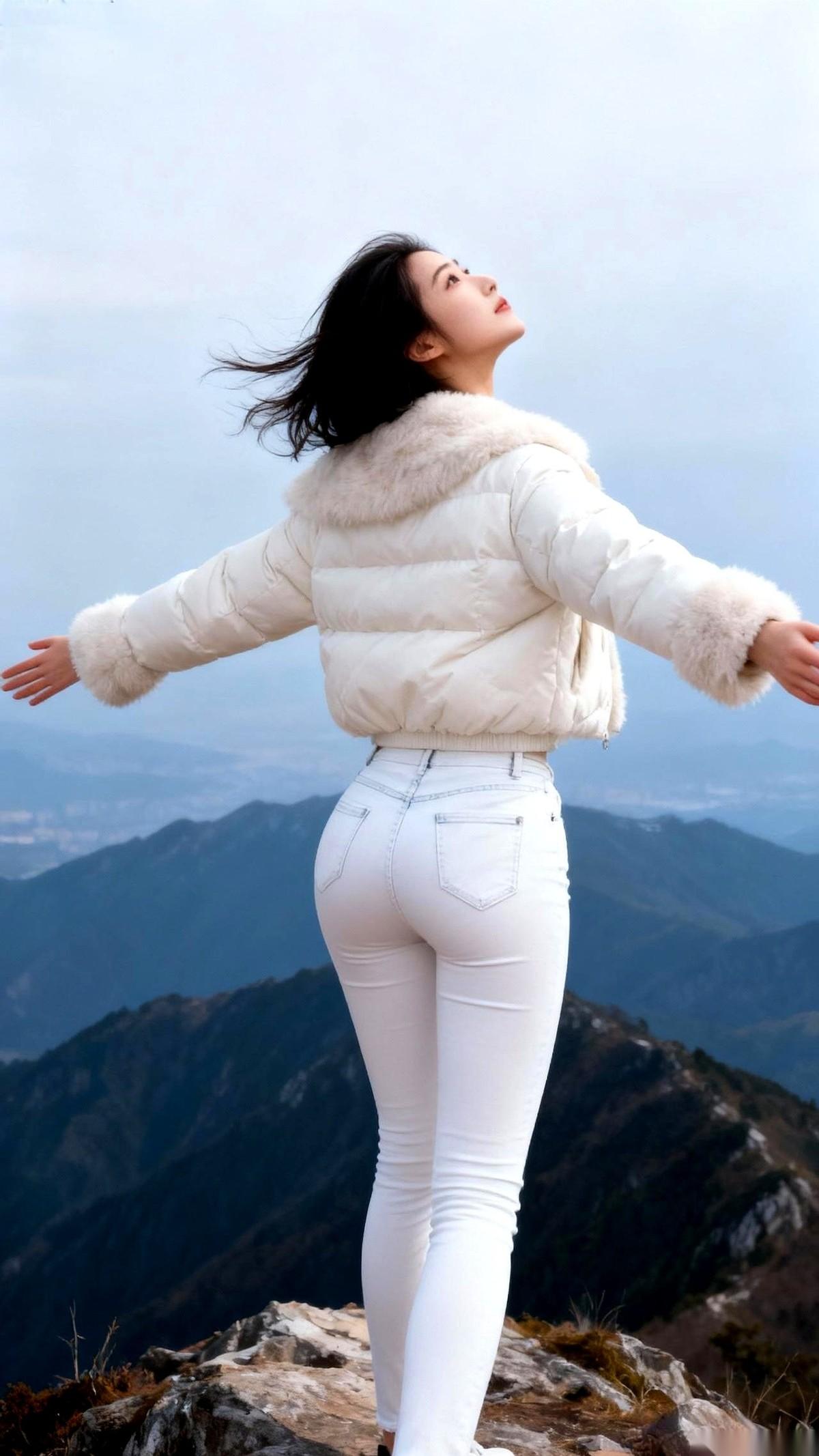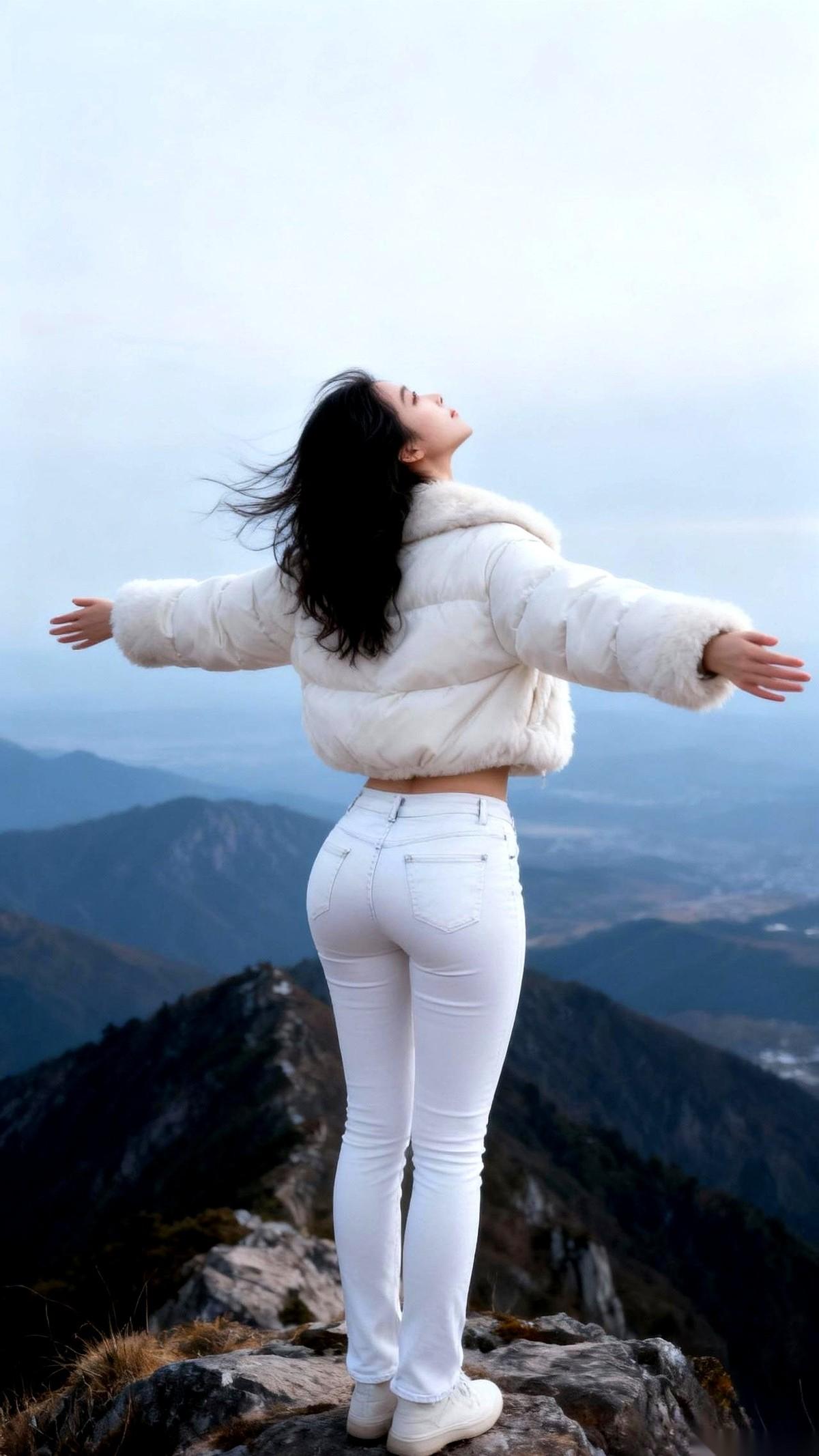 风那么大,她就那么张开了手。 一身白,像要融进山顶的雪里。 底下的人都在看,说,哇,好美,仙女下凡。 我跟你说,哪有什么仙女。 你以为她在凹造型拍大片?你以为她想治愈谁? 扯淡。 那一刻,她谁都不想治愈,她只想放过自己。 你没见过她在格子间里被PPT逼到崩溃的样子,没见过她挤在晚高峰地铁里被踩掉鞋跟的狼狈,更没见过她半夜躲在被子里无声痛哭,觉得自己一无是处。 生活把她揉成一团,她今天跑到山顶,就是想迎着全世界的风,把自己重新展开。 张开手臂,不是拥抱风景,是把心里积攒了一年的委屈、疲惫、不甘心,全他妈还给天地。 那不是什么氛围感,那是一个女人在跟自己和解,在跟生活宣战。 说白了,女人最迷人的,从来不是穿了什么,摆了什么姿势。 是她眼里有故事,脸上没沧桑,是她明明一身软肋,偏偏活成了一身铠甲。