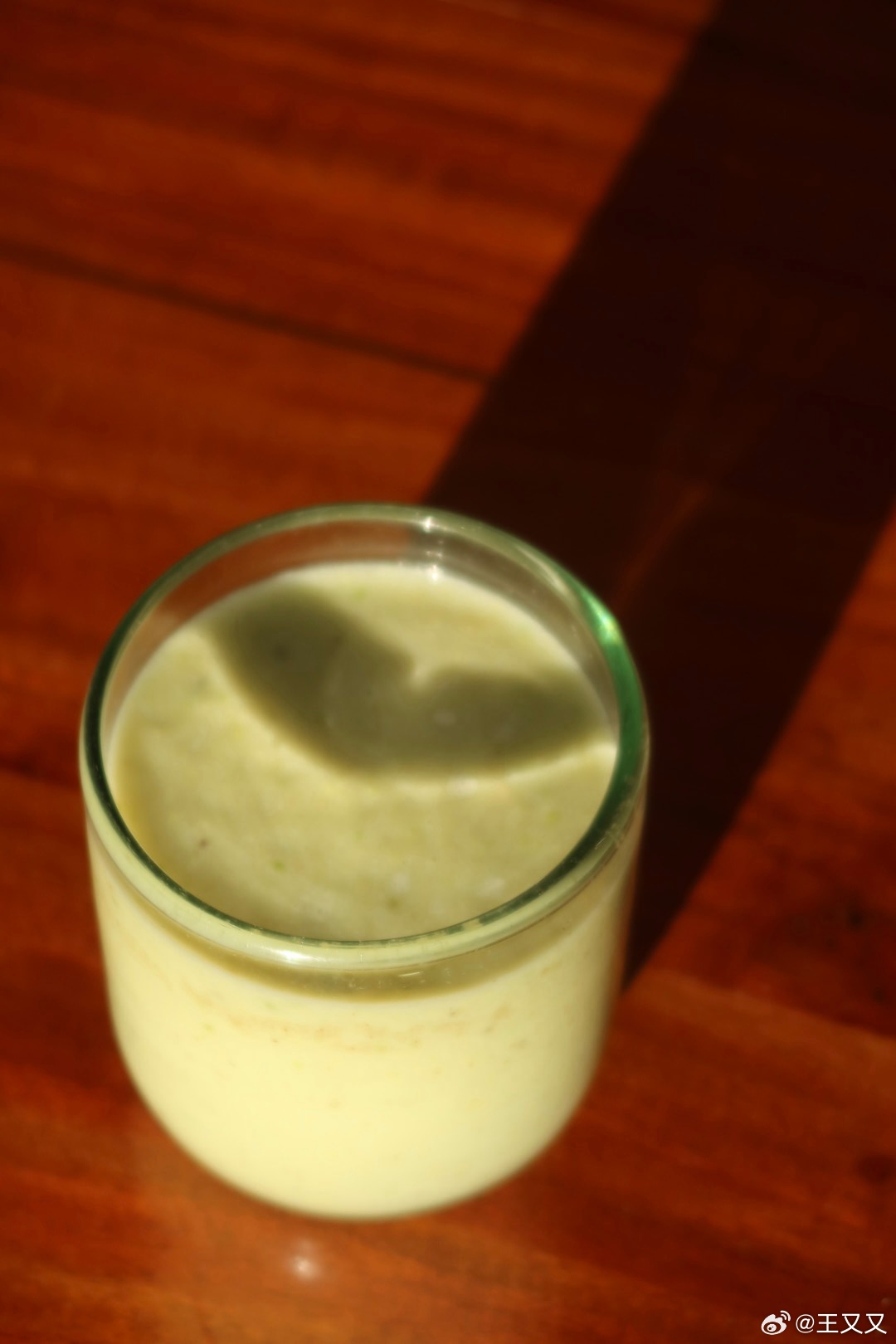 加餐:香蕉🍌牛油果🥑椰奶奶昔,椰奶从冰箱里拿出来有点凉加了些热水