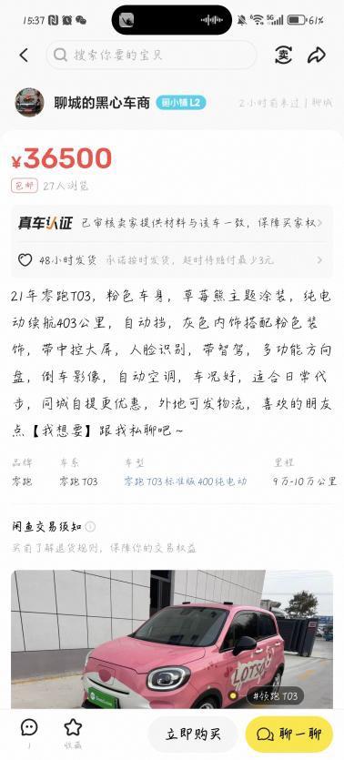 上某鱼看了看,不看不知道一看吓一跳,怎么这车开了两三年还能卖三万多接近四万,掉这么慢的吗?一手全新的也就5万出头吧。【来自懂车帝车友圈】