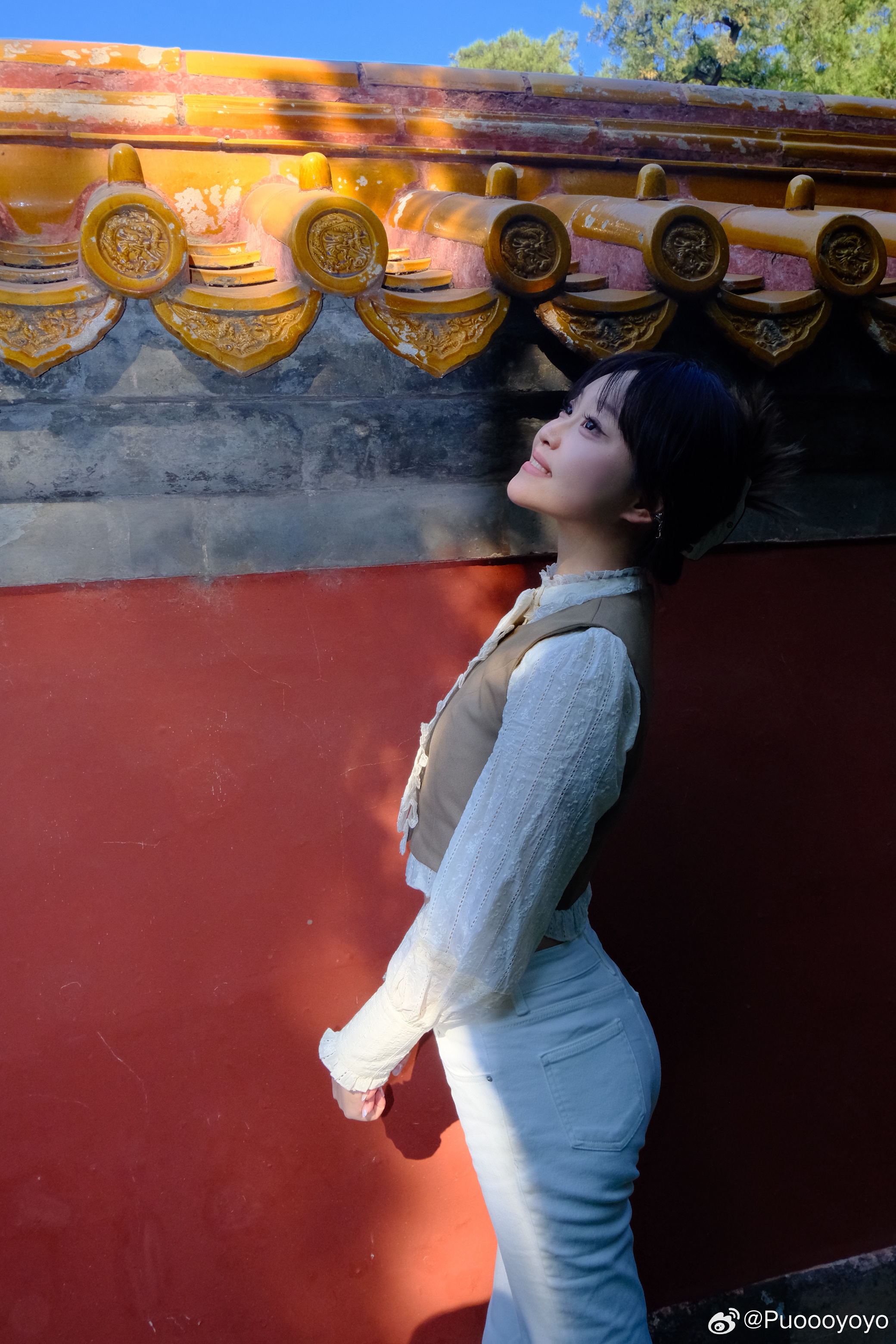 红墙树影