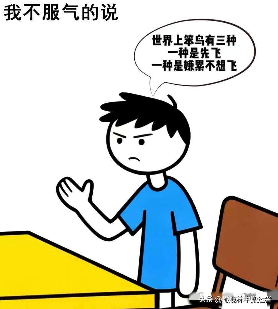 趣味漫画:有次考试成绩不好,妈妈说我是个笨鸟,我说世界上笨鸟有三种,一种是先飞,一种是嫌累不想飞,自己飞不起来就在窝里下个蛋,让下一代飞