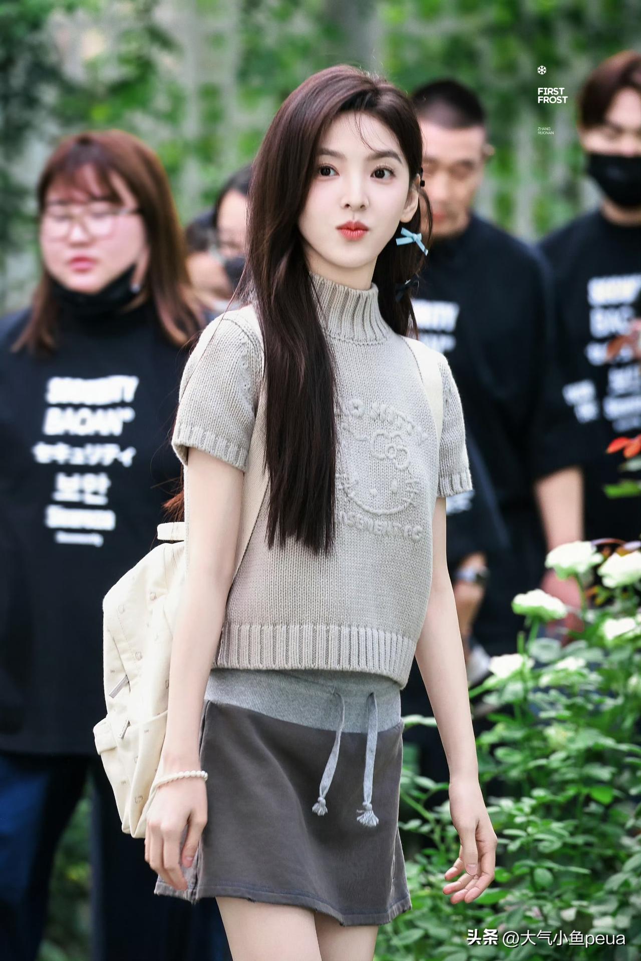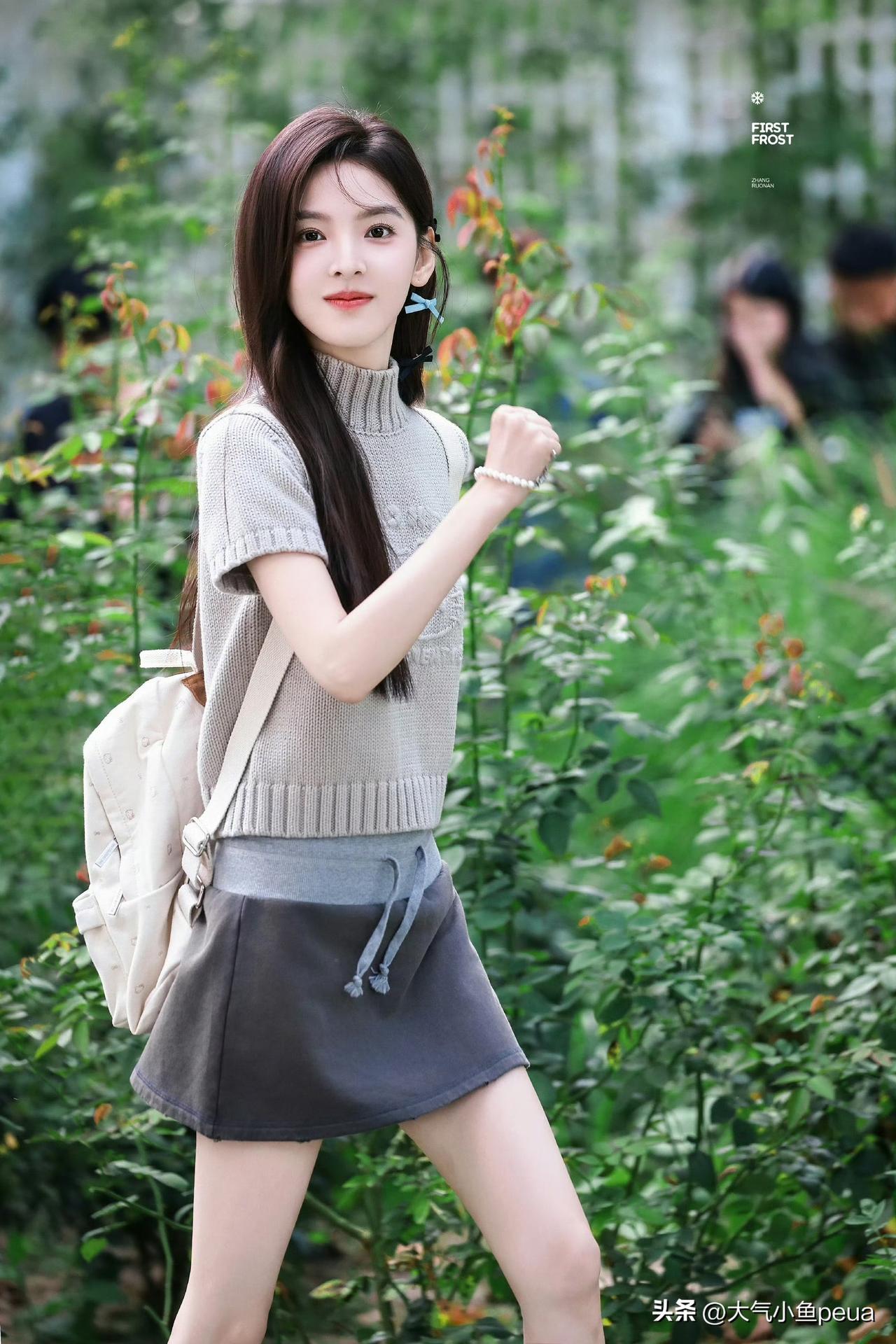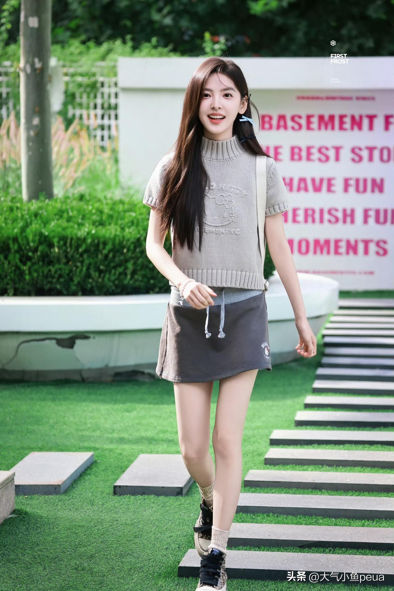 站姐这波图是真的是懂拍的! 章若楠这套hellocat小套装直接甜度拉满,蓝色蝴蝶结简直是灵魂所在,一下子把整个造型的俏皮感点活了~ 这身搭配既有女团风的清爽活力,又带着点软萌猫系感,她一笑感觉屏幕都在冒粉色泡泡! 救命这套图我能循环看一整天,是谁的少女心被击中了我不说!