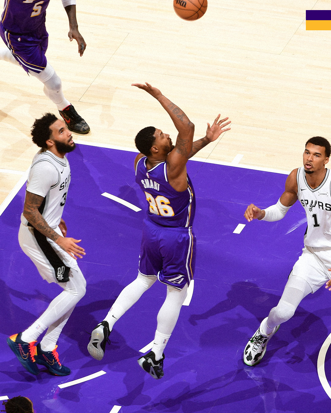 斯马特造成文班第五犯!随即文班被换下!东契奇大战文班亚马湖人vs马刺湖人国度