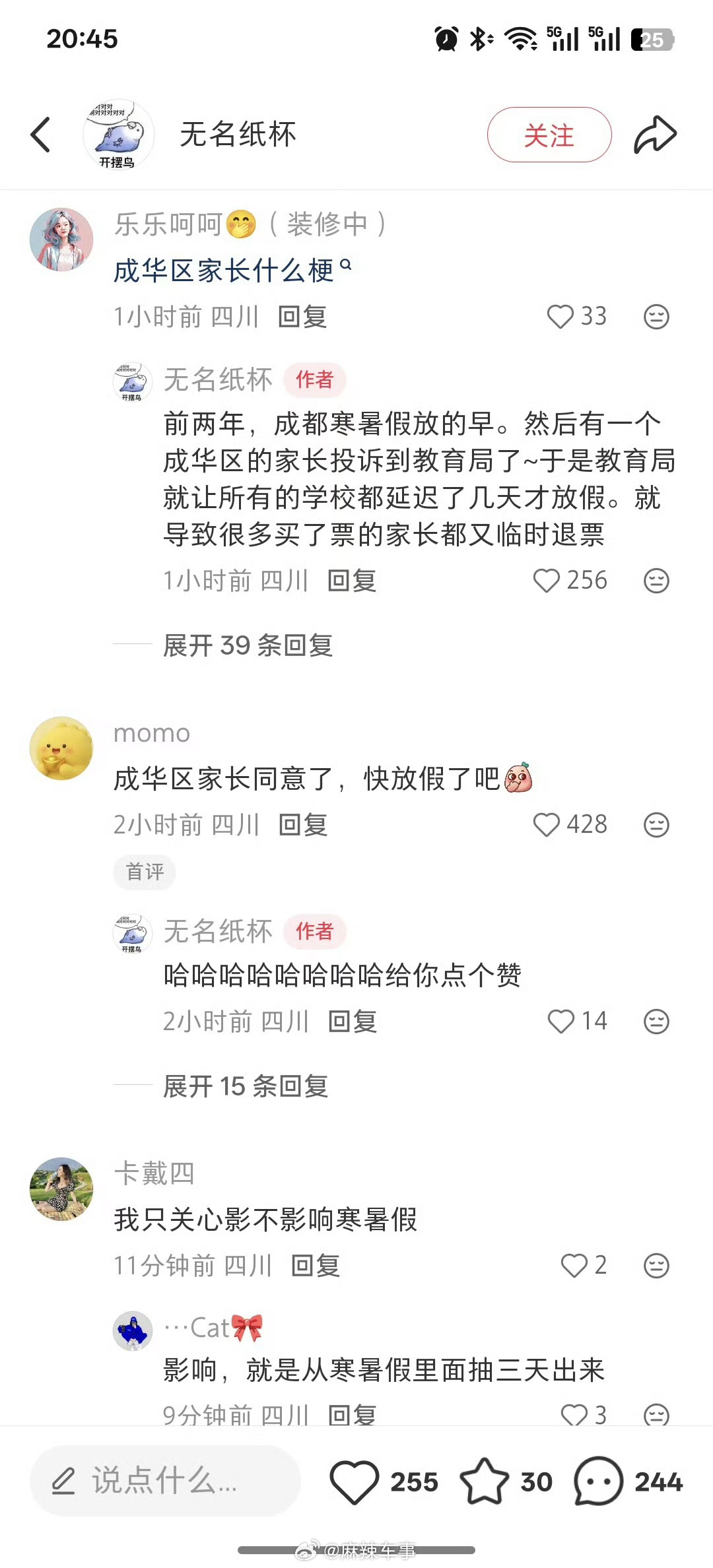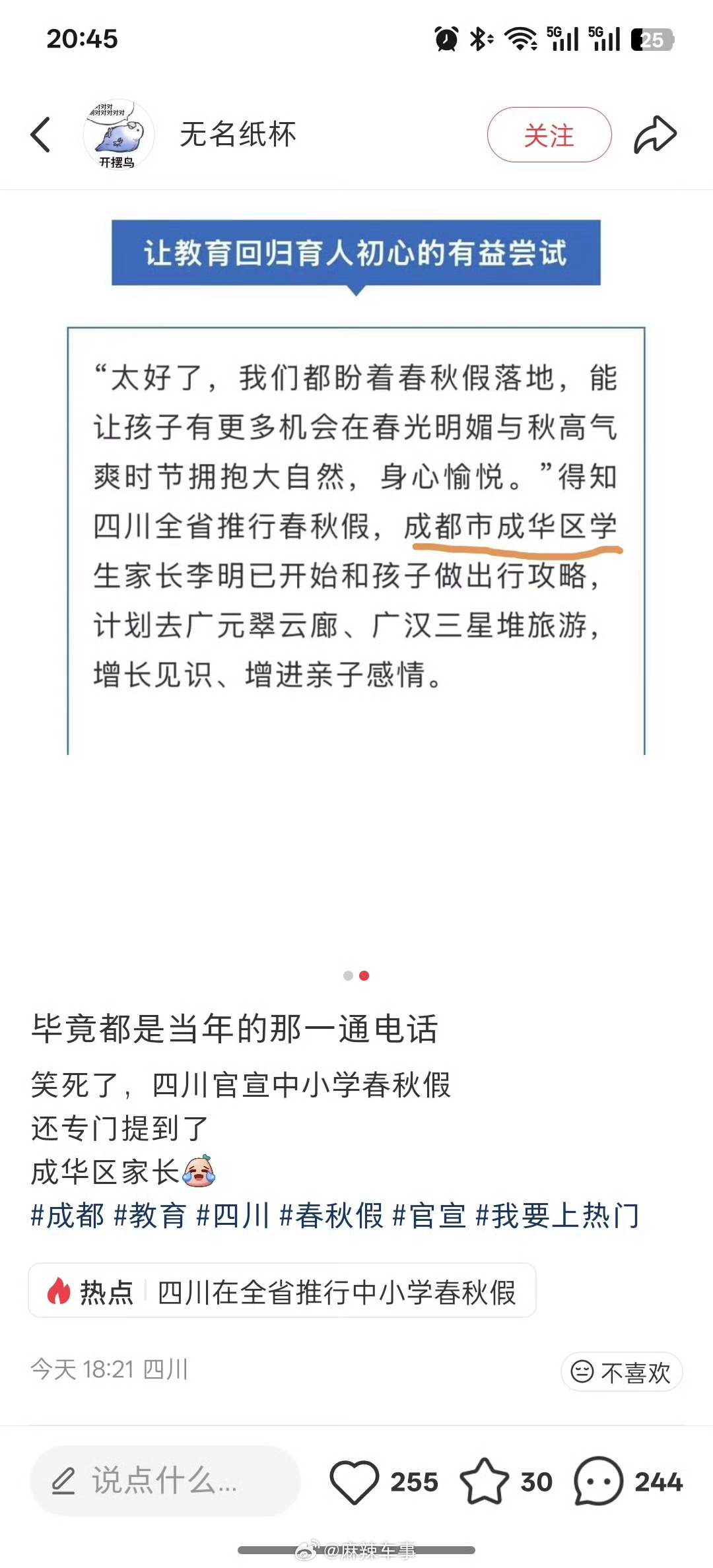 毫无意义,不如给寒暑假延长时间,成都是冬天又冷夏天又热,应该延长寒暑假