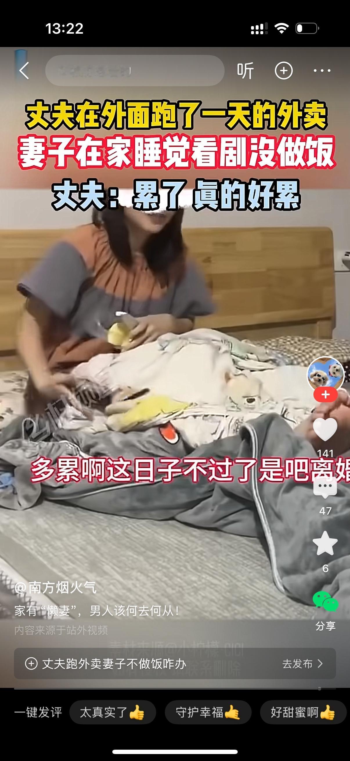 肯和你这个外卖员过日子就不错了[静静吃瓜]说起来这女的模样似乎不错,搞个懒婆娘直播呗