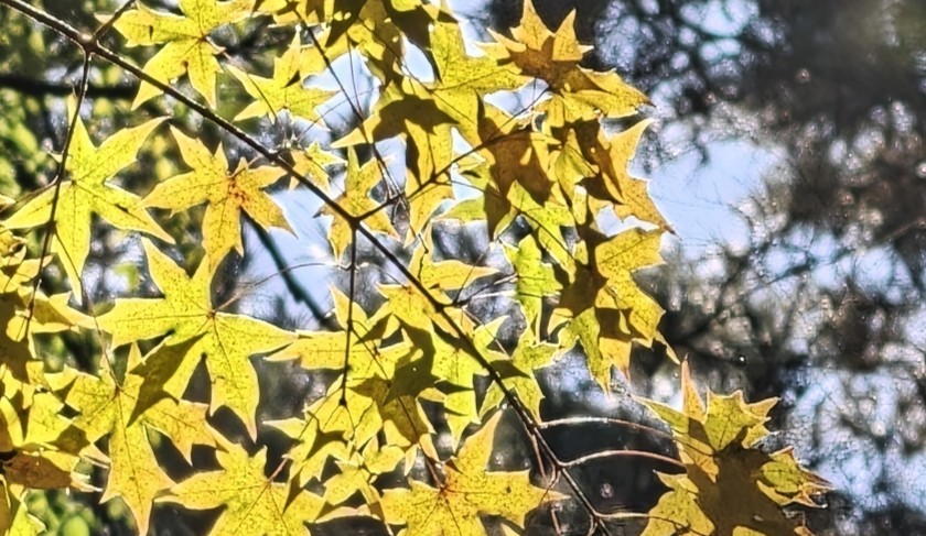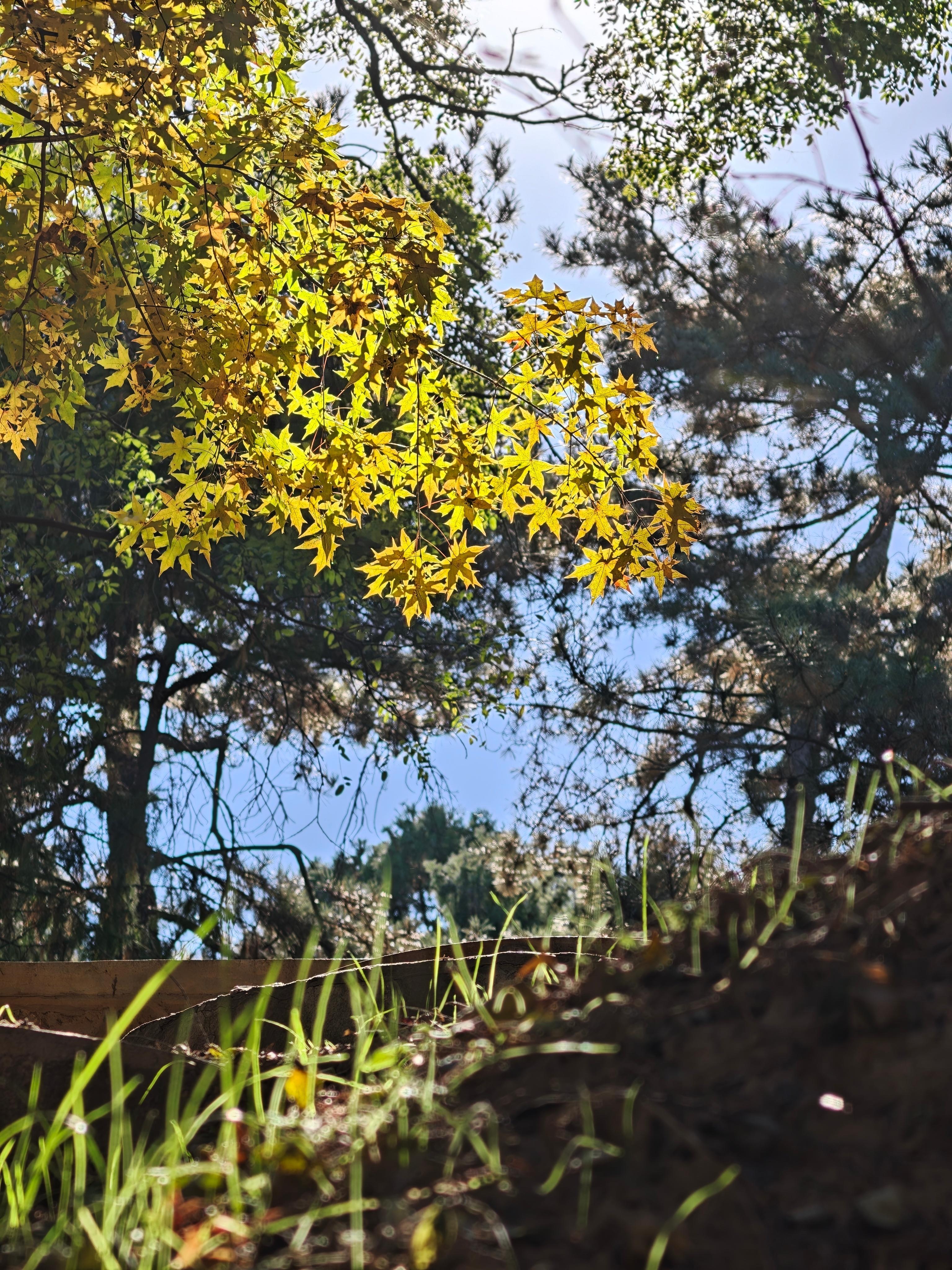 OPPO的虚化算法真心有点东西啊,这张照片拍摄于北京西郊山里,阳光洒在画面主题的黄叶上,我用低机位,构图中以下方草地为前景,这是光学虚化,中景主体是那颗黄叶树,远景是两颗针叶树。其实远景和中景离得比较近,靠手机光圈不可能带来这么大的光学虚化效果,但拍出来的效果,远景针叶树冠和中景之间形成了很好的层次感,甚至黄叶交错的间隙都抠出了效果,必须放大到100%观察细节才能分辨出一点点算法“描边”的痕迹。我感觉中景和远景应该是略微有些光学虚化,算法再做了一波加深?oppofindx8ultra手机摄影